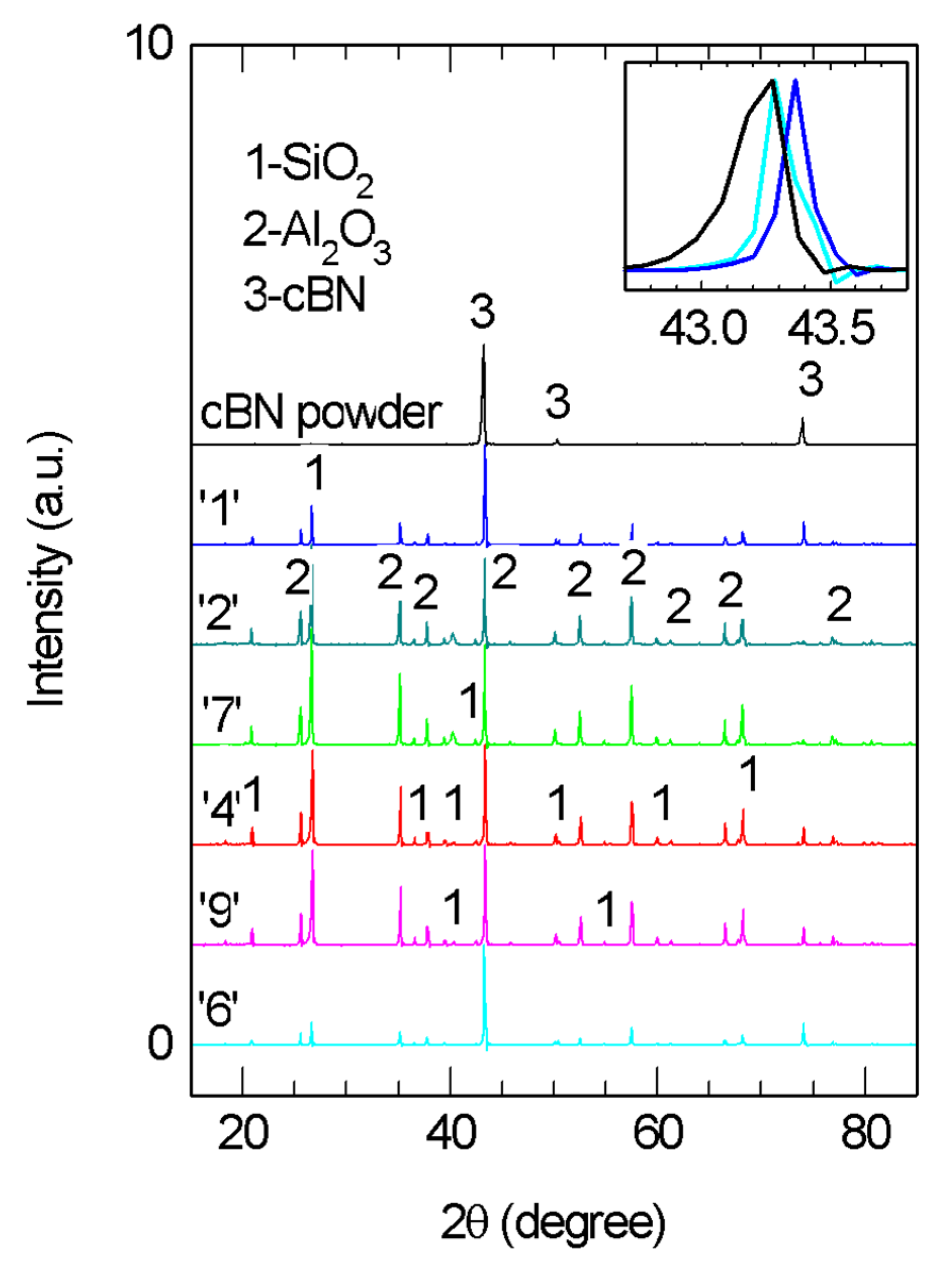 - Wang, P.F.; Li, Z.H.; Zhu, Y.M. Fabrication of high thermal conductive Al–cBN ceramic sinters by high temperature high pressure method. Solid State Sci. 2011, 13, 1041–1046. [Google Scholar] [CrossRef]