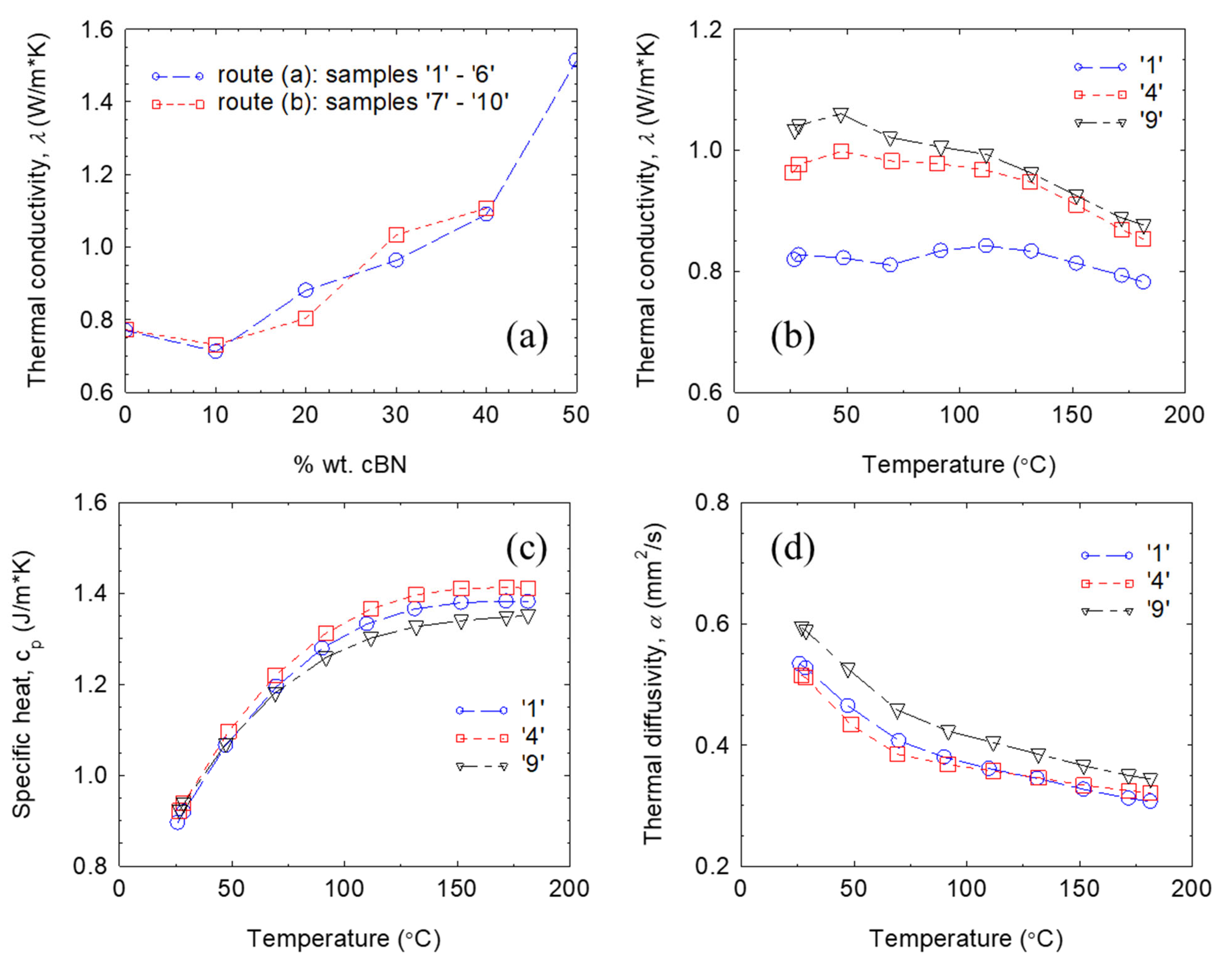 - Mizuuchi, K.; Inoue, K.; Agari, Y.; Tanaka, M.; Takeuchi, T.; Tani, J.I.; Kawahara, M.; Makino, Y.; Ito, M. Thermal Conductivity of Cubic Boron Nitride (cBN) Particle Dispersed Al Matrix Composites Fabricated by SPS. Mater. Sci. Forum 2017, 879, 2413–2418. [Google Scholar] [CrossRef]