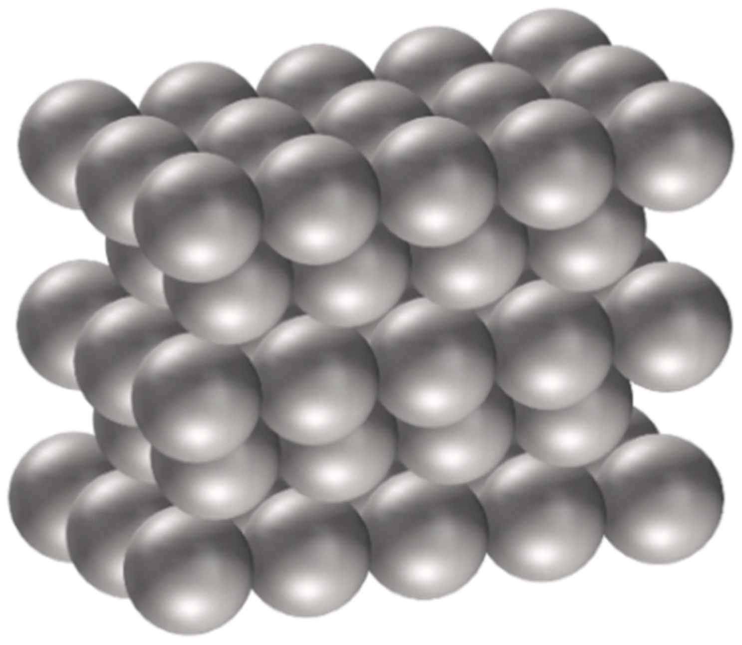 Figure 1. The closest packing of spheres of the same size can take two basic forms: hexagonal packing (HCP) and face-centered cubic packing (FCC). The space utilization rate of both is 74.05%. According to the stage filling theory, the pore diameter formed by single-size particles is 0.72 times the diameter of the particles used [