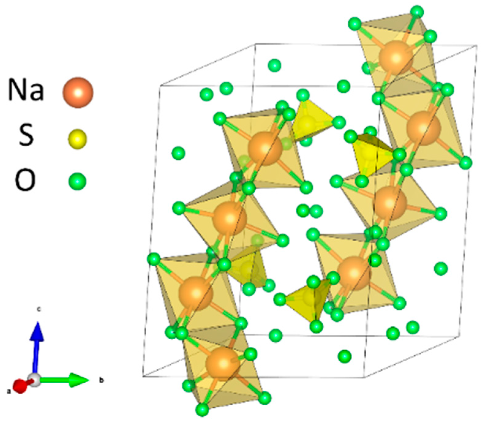 When the concentration of sodium sulfate is high enough and the temperature is lower than 32.4 °C, the crystallization reaction of sodium sulfate salt will occur; the molecular cell diagram is shown in