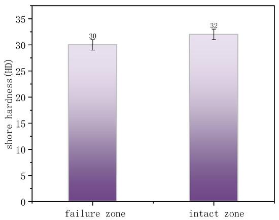 Shore hardness of the failure zone and intact zone.