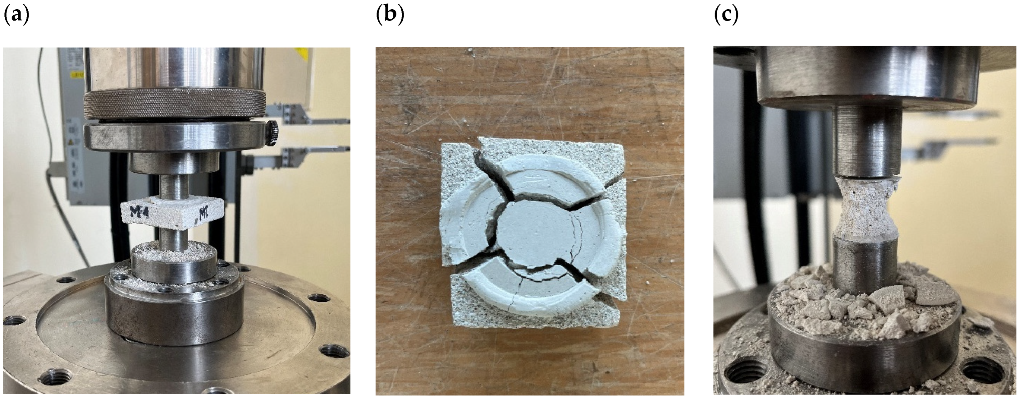 - EN 1015-11:2007; Methods of Test for Mortar for Masonry—Part 11: Determination of Flexural and Compressive Strength of Hardened Mortar. CEN: Brussels, Belgium, 2006.
