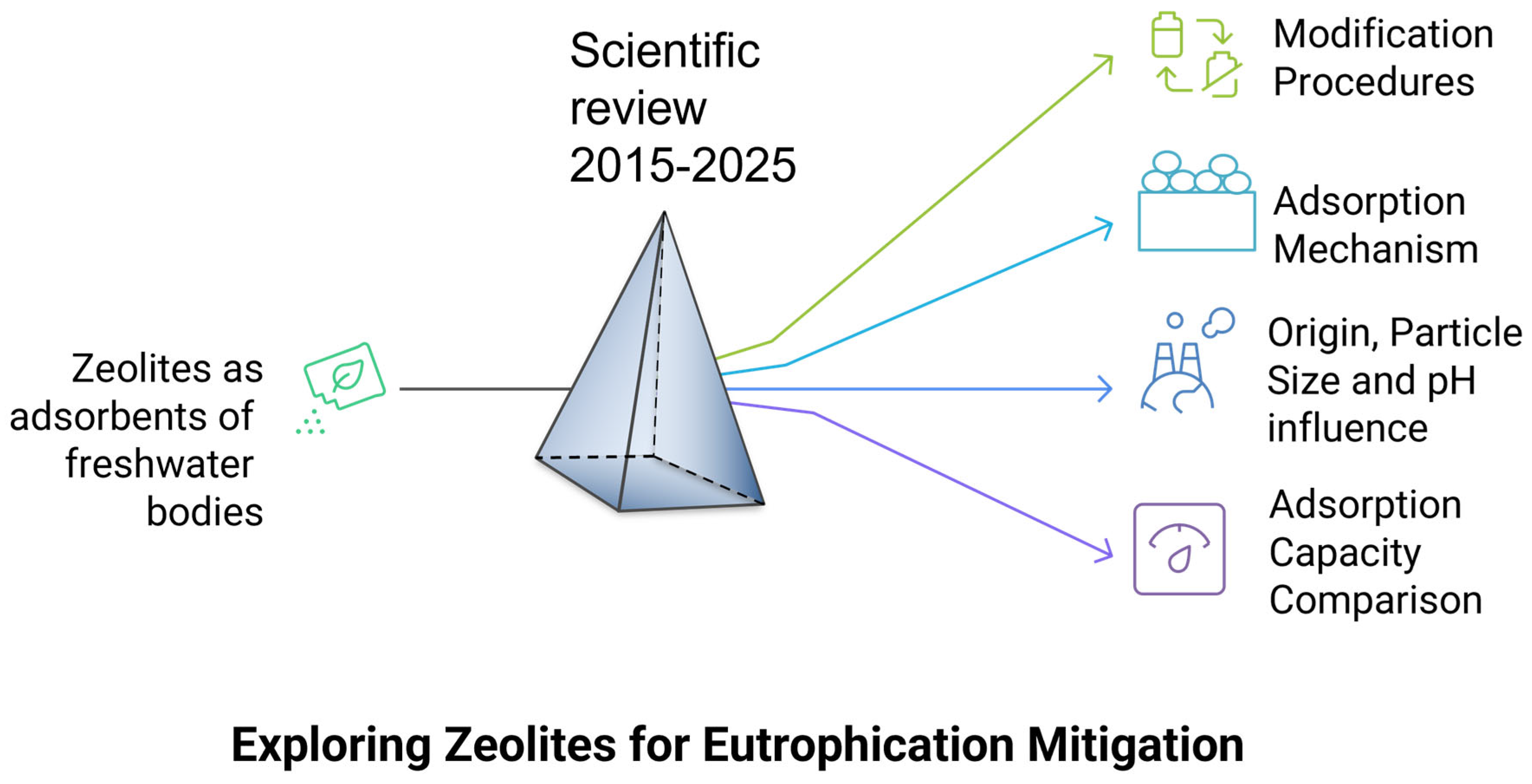 - Biliani, I.; Papadopoulou, E.; Zacharias, I. Evaluating Zeolites of Different Origin for Eutrophication Control of Freshwater Bodies. Sustainability 2025, 17, 7120. [Google Scholar] [CrossRef]