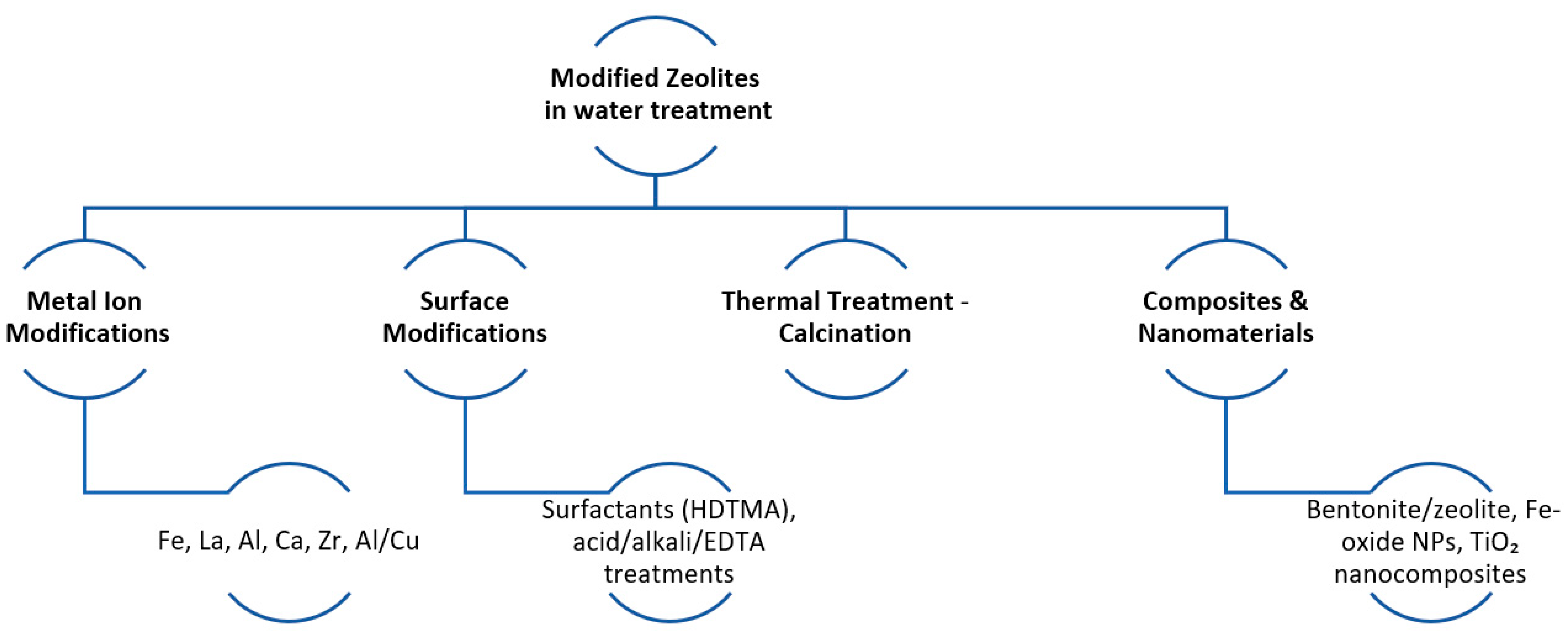 - Shi, J.; Yang, Z.; Dai, H.; Lu, X.; Peng, L.; Tan, X.; Shi, L.; Fahim, R. Preparation and Application of Modified Zeolites as Adsorbents in Wastewater Treatment. Water Sci. Technol. 2017, 2017, 621–635. [Google Scholar] [CrossRef]