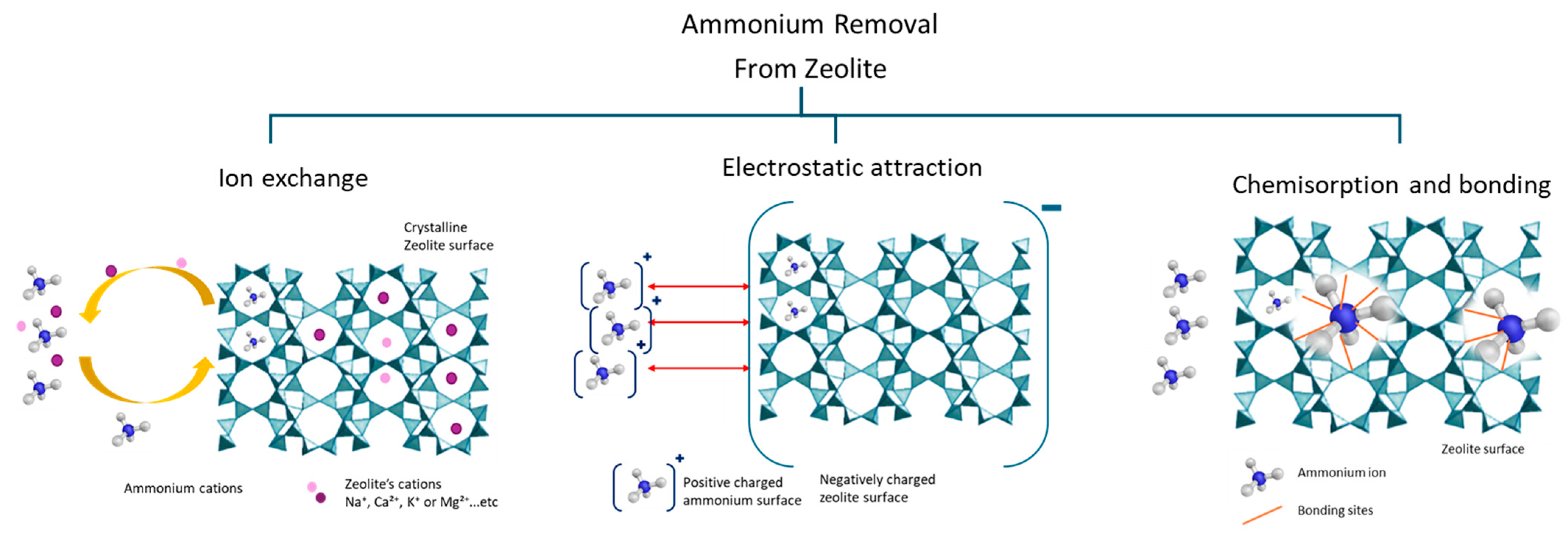 - Zhou, H.D.; Wang, C.Y.; Wang, Q.; Xu, B.X.; Zhu, G. Efficiency, Mechanism and Application Prospect of Ammonium Adsorption and Desorption over a Sodium-Acetate-Modified Synthetic Zeolite. RSC Adv. 2024, 14, 17843–17854. [Google Scholar] [CrossRef]