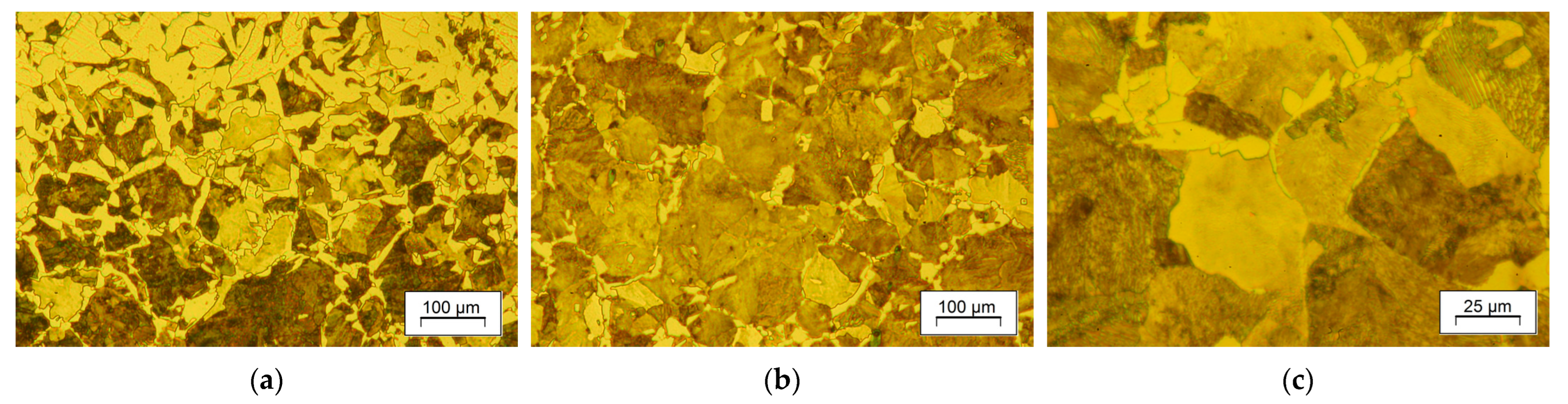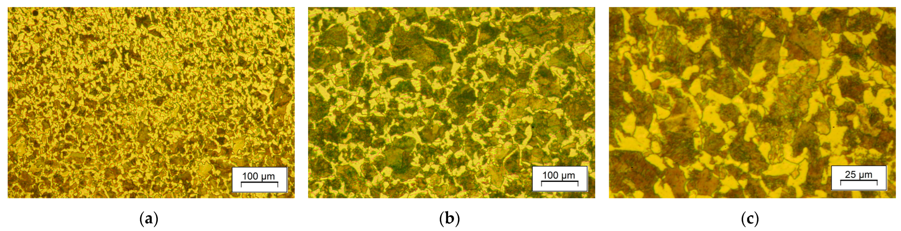 - Opiela, M.; Zalecki, W.; Grajcar, A. Influence of plastic deformation on CCT diagrams of newly developed microalloyed steel. J. Achiev. Mater. Manuf. Eng. 2012, 51, 78–89. [Google Scholar]