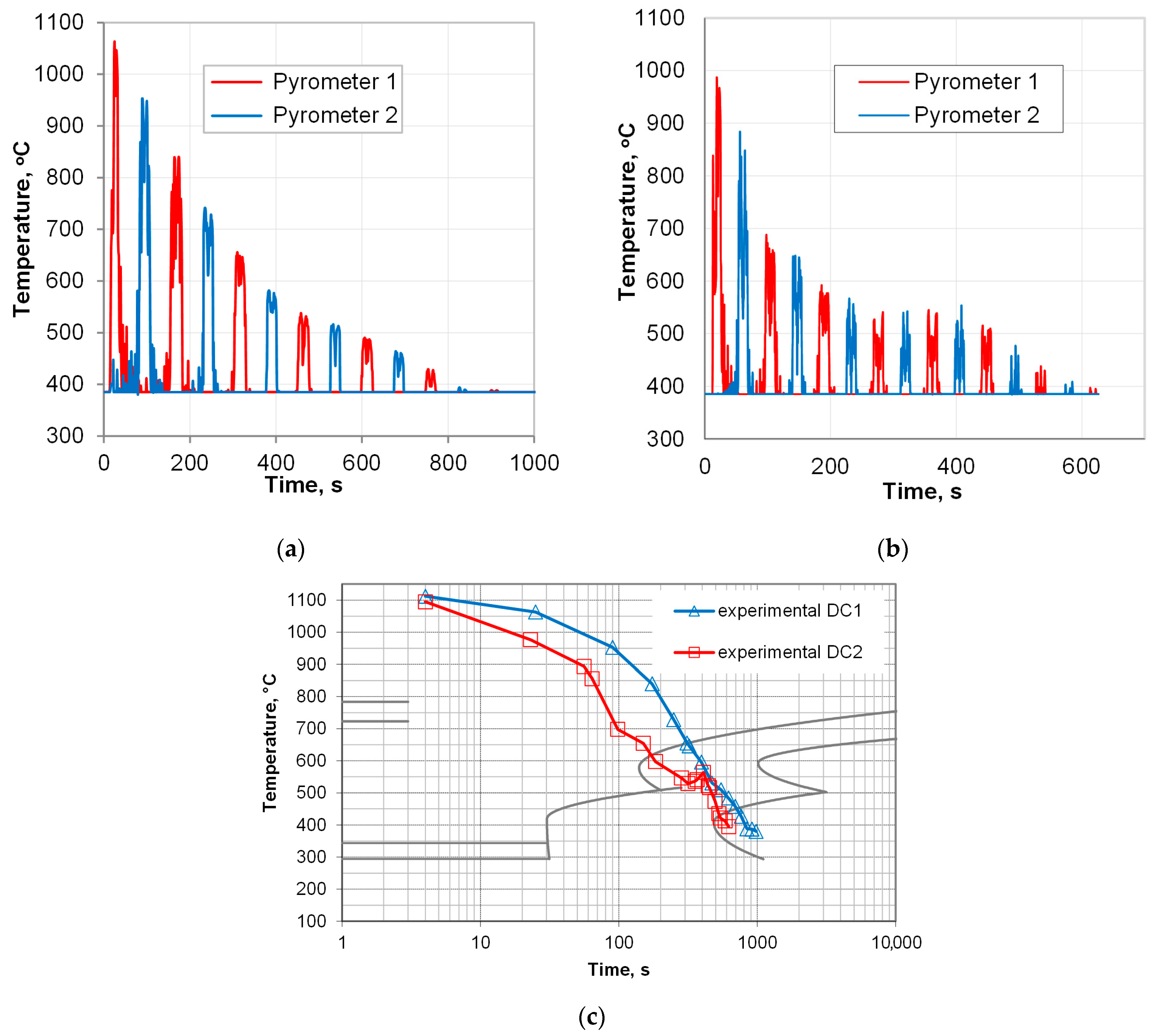 - Direct Cooling (modified strategy): Forging at the same temperature, followed by direct cooling with a revised strategy involving accelerated air cooling interrupted to produce a pseudo-isothermal plateau within the pearlite zone (DC2),