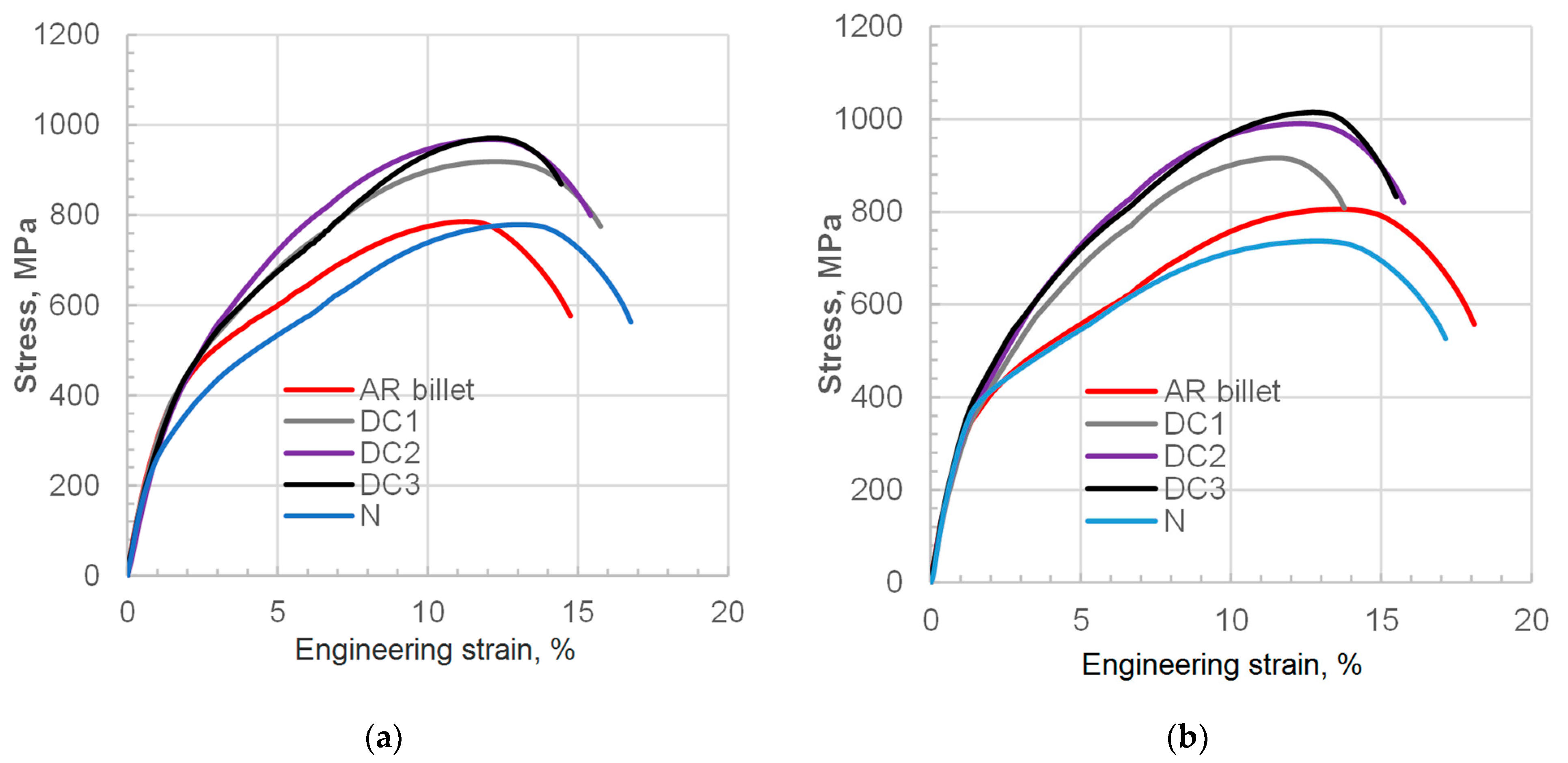 - Wang, J.; Shen, Y.; Liu, Y.; Wang, F.; Jia, N. Tailoring strength and ductility of a Cr-containing high carbon steel by cold-working and annealing. Materials 2019, 12, 4136. [Google Scholar] [CrossRef]