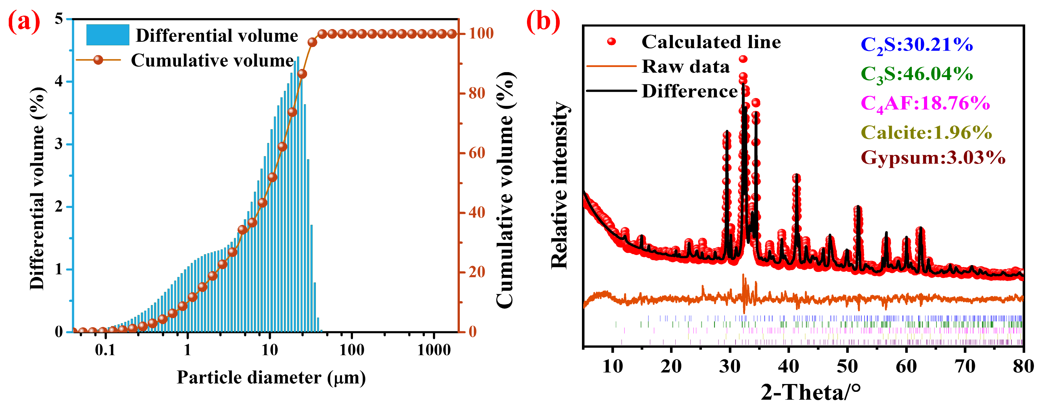 - Chen, M.; Liu, Q.; Zheng, H.; Yu, L.; Jiang, L.; Gu, Z.; Li, W. Understanding strengthening mechanisms of Ca-LDO on cementitious materials. Cem. Concr. Compos. 2024, 145, 105340. [Google Scholar] [CrossRef]