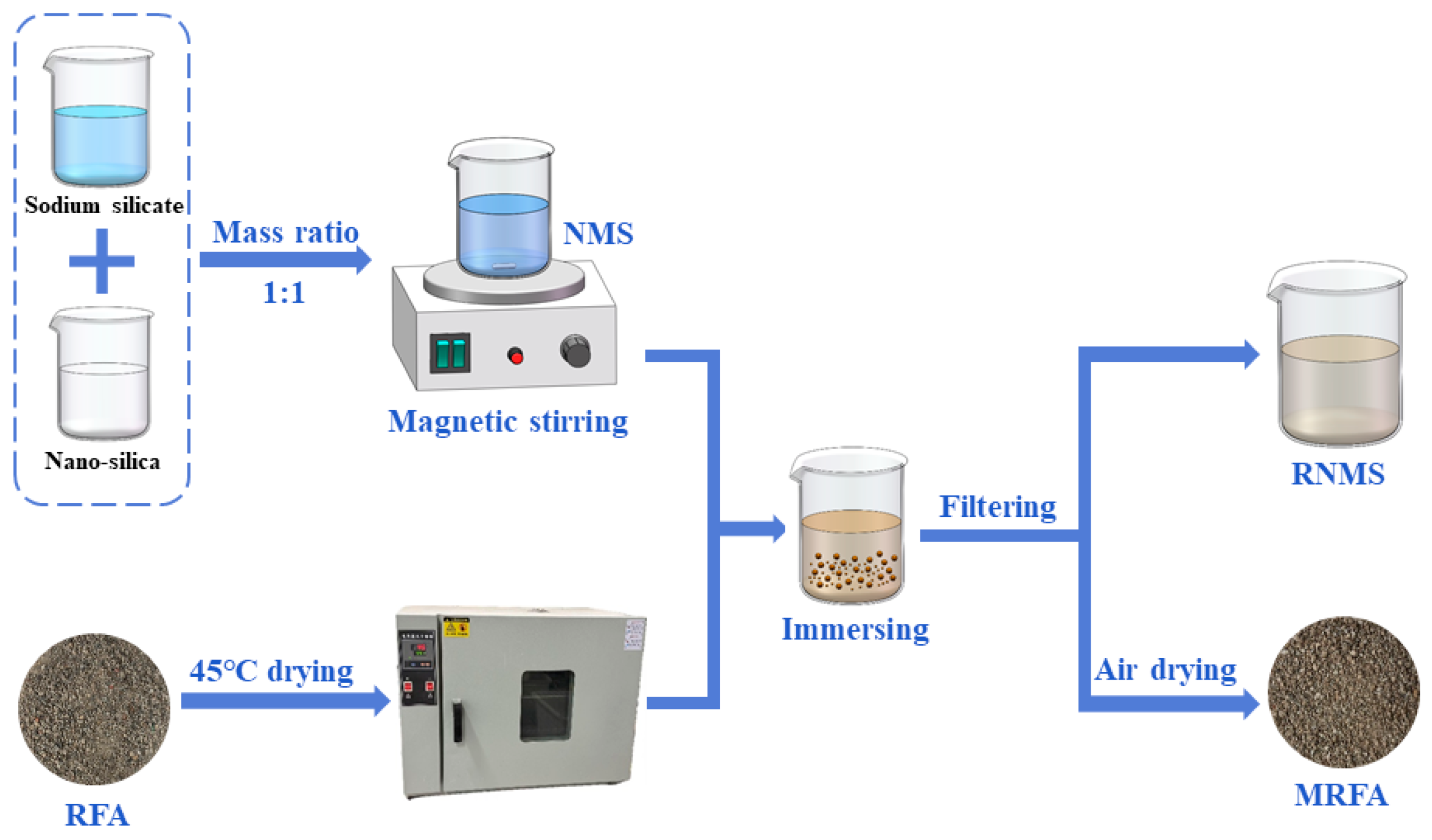 2.2.1. Modification Process of RFA and Waste NMS Recycling Process