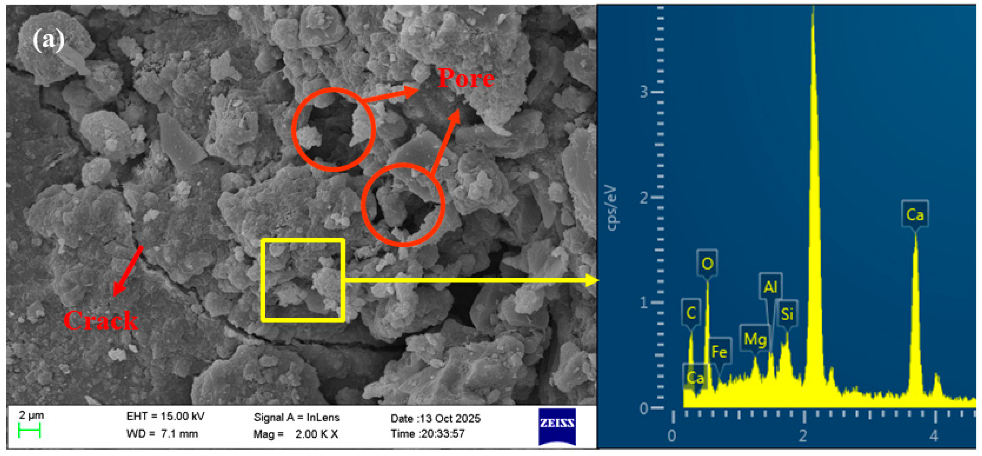 - Based on the findings of this study, several key directions for future research are recommended to advance the field. First, it is essential to conduct a comprehensive investigation of the long-term durability of AASRMs prepared with recycled activators, including their performance under freeze–thaw cycles, sulfate attack, and long-term drying shrinkage. To deepen our understanding of these mechanisms, future studies should incorporate quantitative microstructural analyses. Although this study qualitatively links microstructural improvements to performance, techniques such as quantitative image analysis of backscattered electron (BSE-SEM) micrographs can be used to establish direct numerical correlations between key microstructural indicators (such as porosity or gel fraction from image analysis) and observed macroscopic performance. Second, the applicability of this NMS pretreatment method can be explored in other AAM systems, such as low-calcium fly ash-based geopolymers, in which the interaction mechanisms may differ. Finally, detailed techno-economic analyses and comprehensive life cycle assessments (LCA) will provide valuable data for quantifying the actual economic and environmental benefits of this integrated “modification–recycling” approach, paving the way for its potential industrial application.