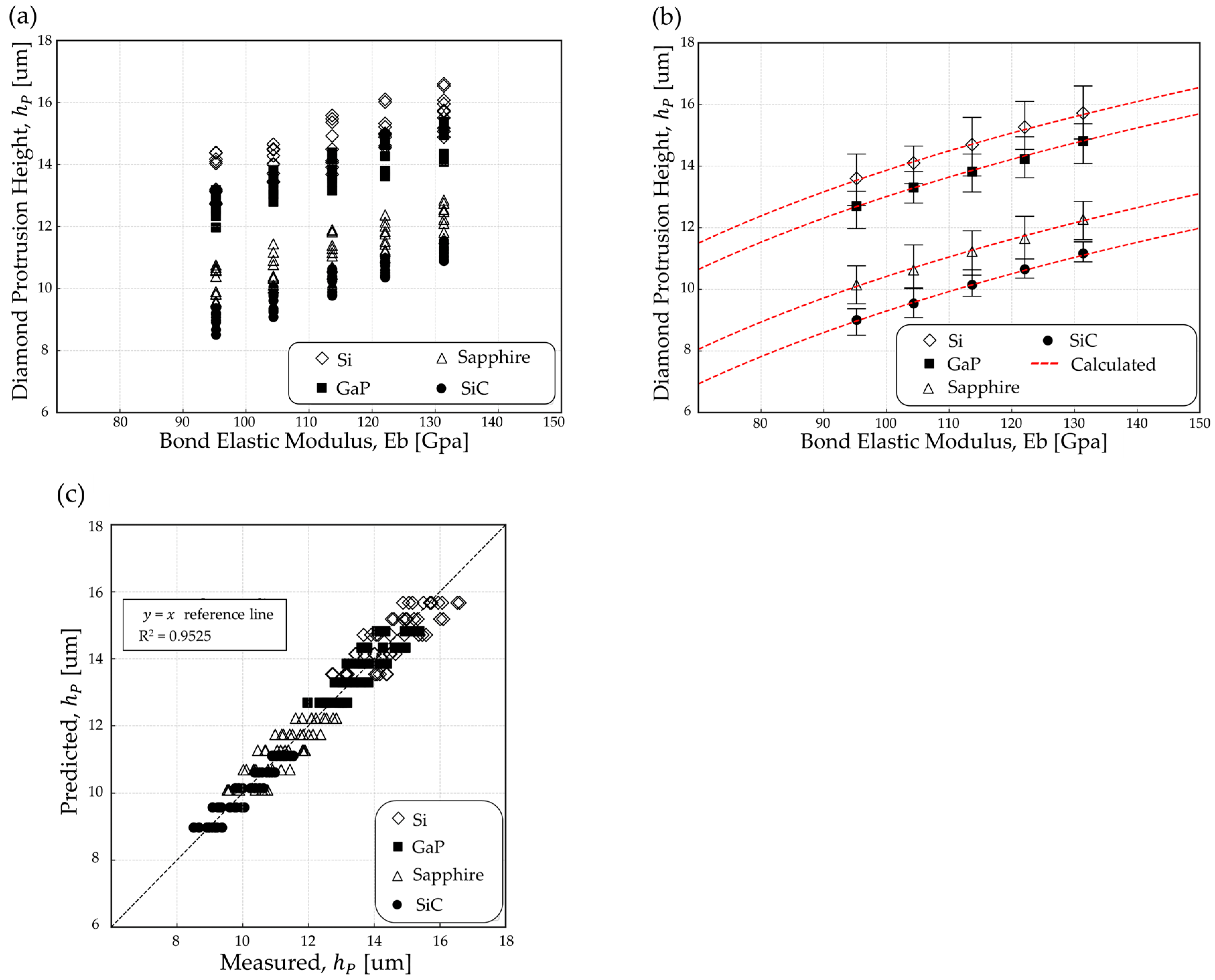3.1. Diamond Protrusion Height with Elastic Bond Modulus
