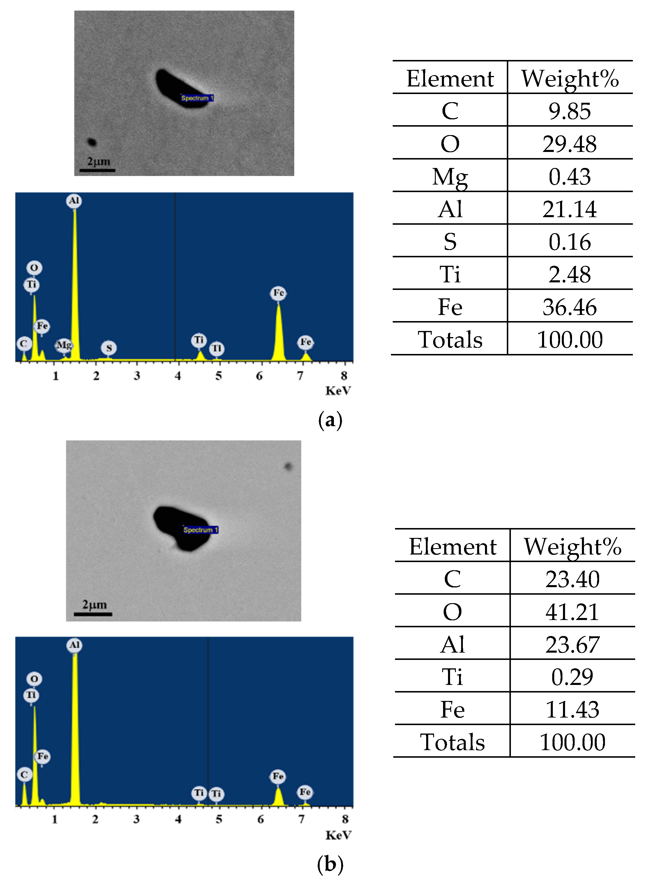 - Cha, W.Y.; Kim, W.Y. In-situ Observation of Inclusion Formation Behavior in Ultra-Low Carbon Steel with Al–Ti Complex Deoxidation. ISIJ Int. 2025, 65, 1631–1641. [Google Scholar] [CrossRef]