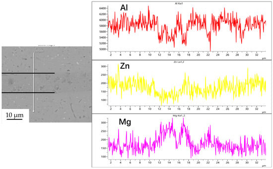 Line scan of element distribution at diffusion joints of 7B04 with 50 nm Al powder interlayer.