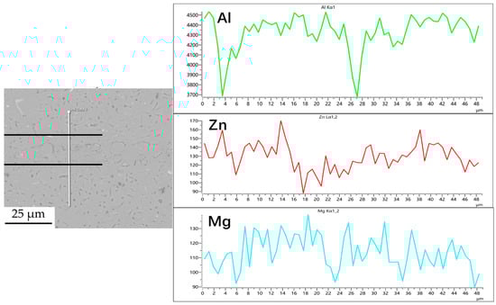 Line scan of element distribution at diffusion joints of 7B04 with 5 μm 7075 powder interlayer.