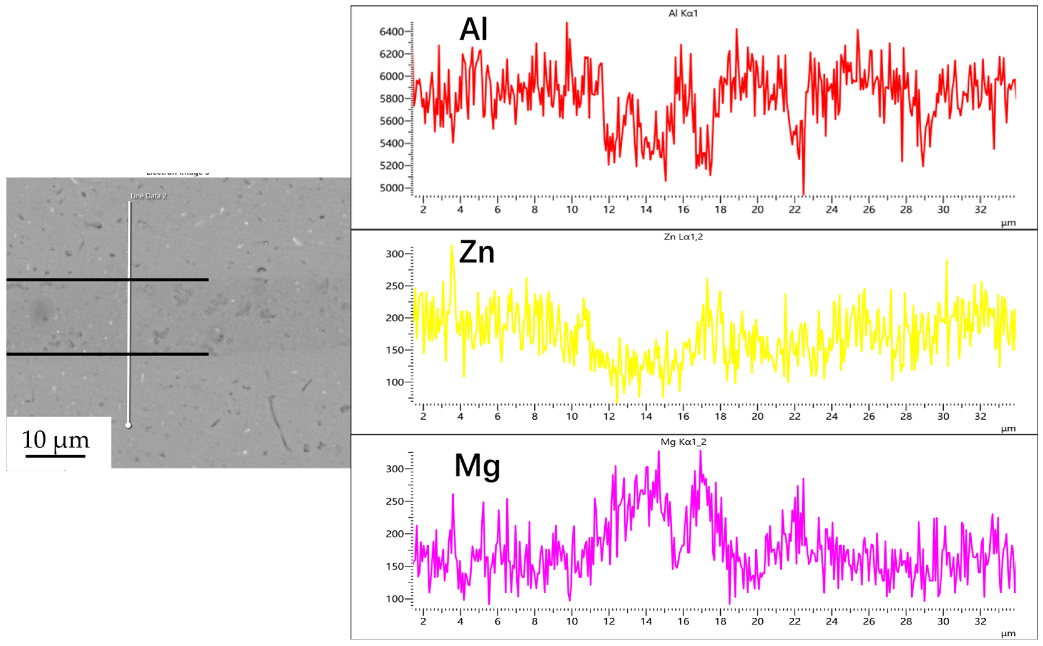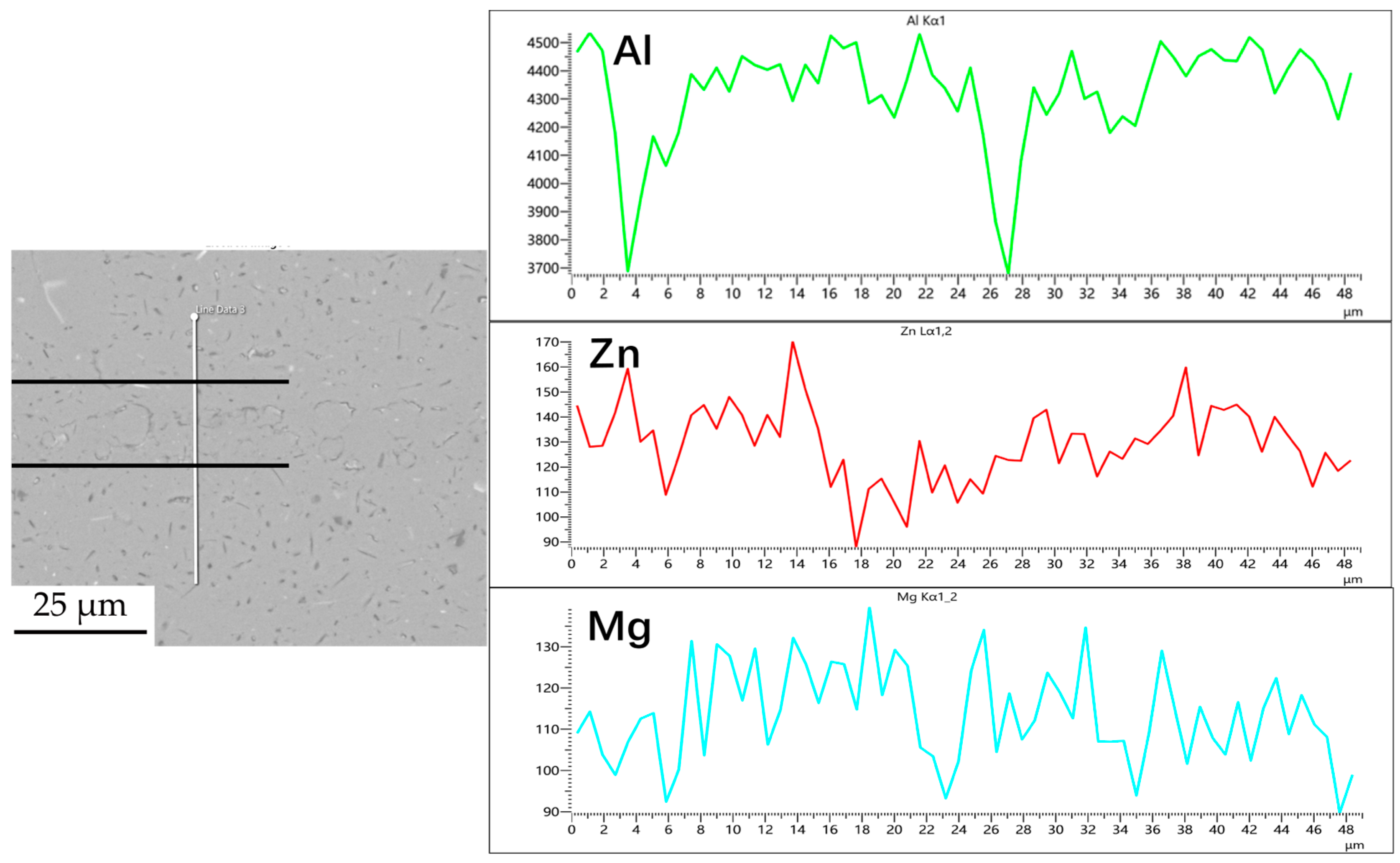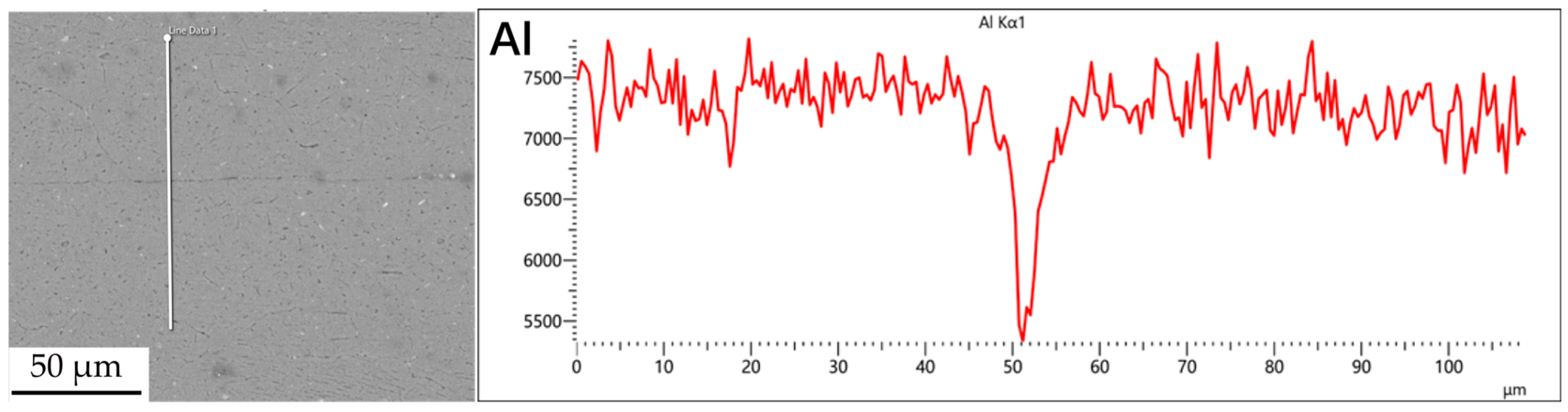- Elemental distribution analysis confirmed mutual diffusion of alloying elements (Zn, Mg, Cu) across the bonding interface for all powder interlayer types. The concentration gradients facilitated atomic interdiffusion, contributing to metallurgical bonding. The measured deformation rates for all bonded specimens remained below 6%. It is concluded that the powder interlayer strategy effectively promotes elemental interdiffusion while successfully controlling deformation, making it suitable for applications requiring dimensional accuracy.