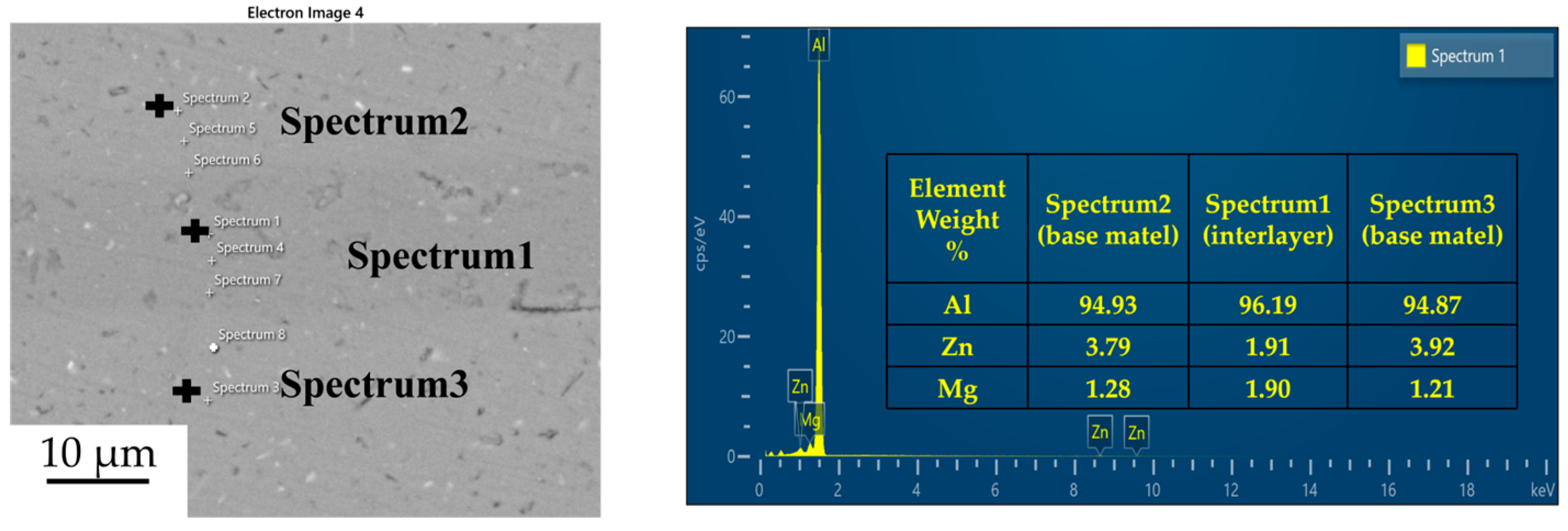 3.2. DB with the Mixed Al/7075 Powder Interlayer