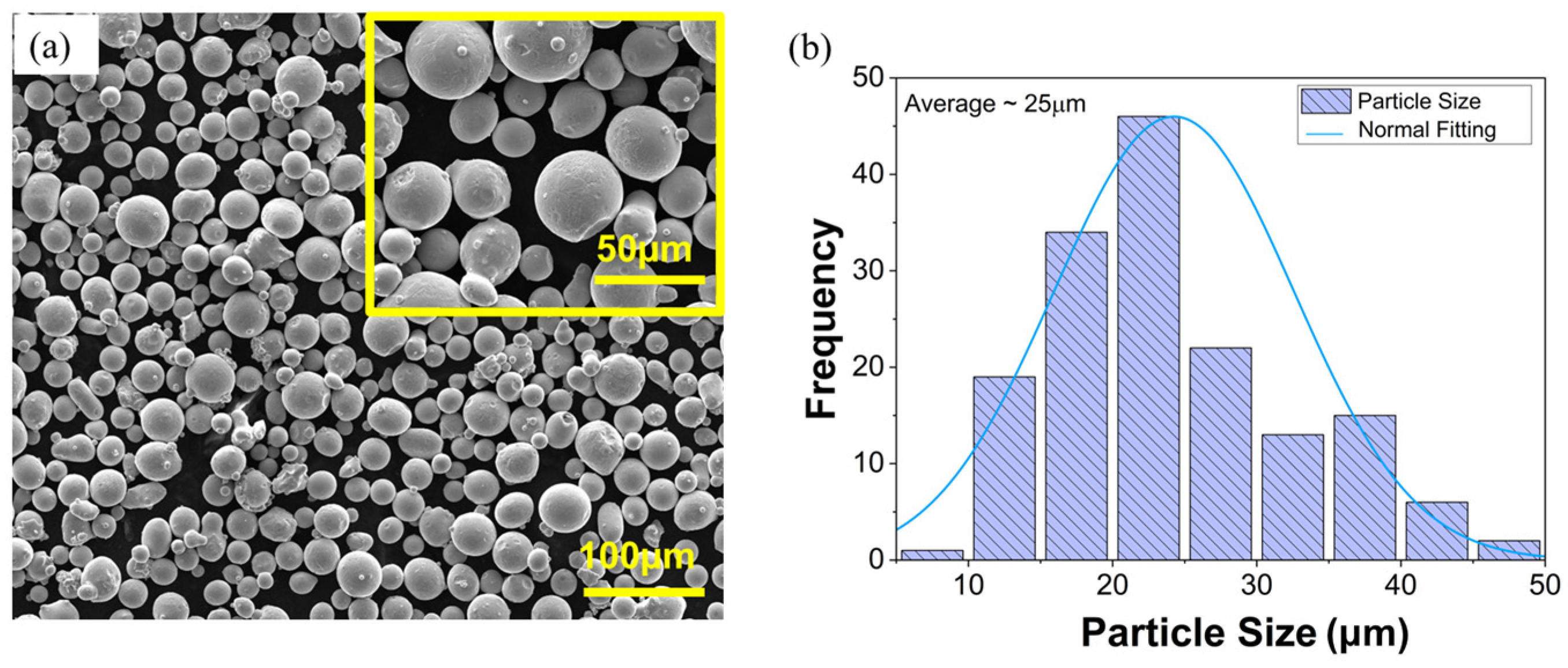 | Laser Power (W) | Scanning Speed (mm/s) | Hatch Spacing (µm) | Layer Thickness (µm) | Laser Spot Size (µm) | Atmosphere |
