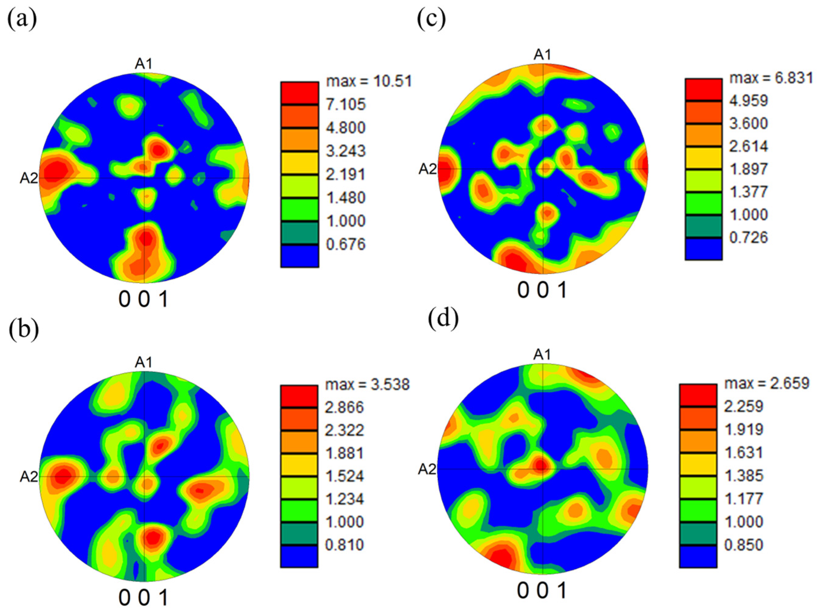 | Specimens | Plane/Direction | Average Grain Size (µm) | Maximum Grain Size (µm) |