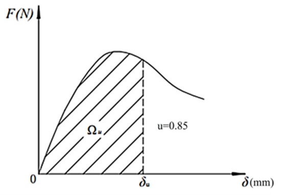 In the above equations, is the equivalent bending strength (N/mm2); is the equivalent bending toughness (KJ/m3); is the height of cross section (mm); is the width of the section (mm); is the span of the specimen (mm); is the corresponding deflection value when the load drops to u times the peak load, where u is 0.85; and is the area under the load–deflection curve when the mid-span deflection is .