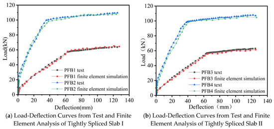 A comparison between the experimentally obtained load–deflection curves and the finite element analysis results (Figure 13) indicates that both sets of curves follow similar trends and show good agreement.