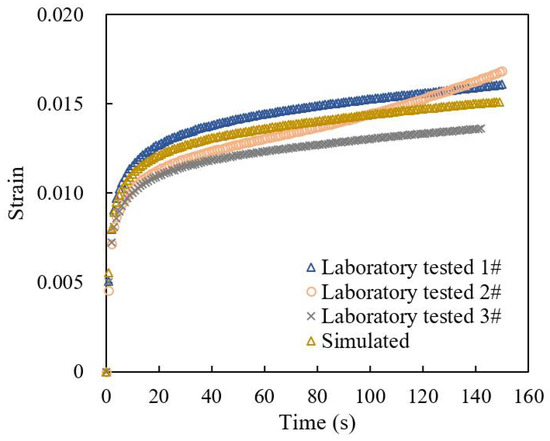 Strain–time curves during laboratory uniaxial compression creep test and simulation.
