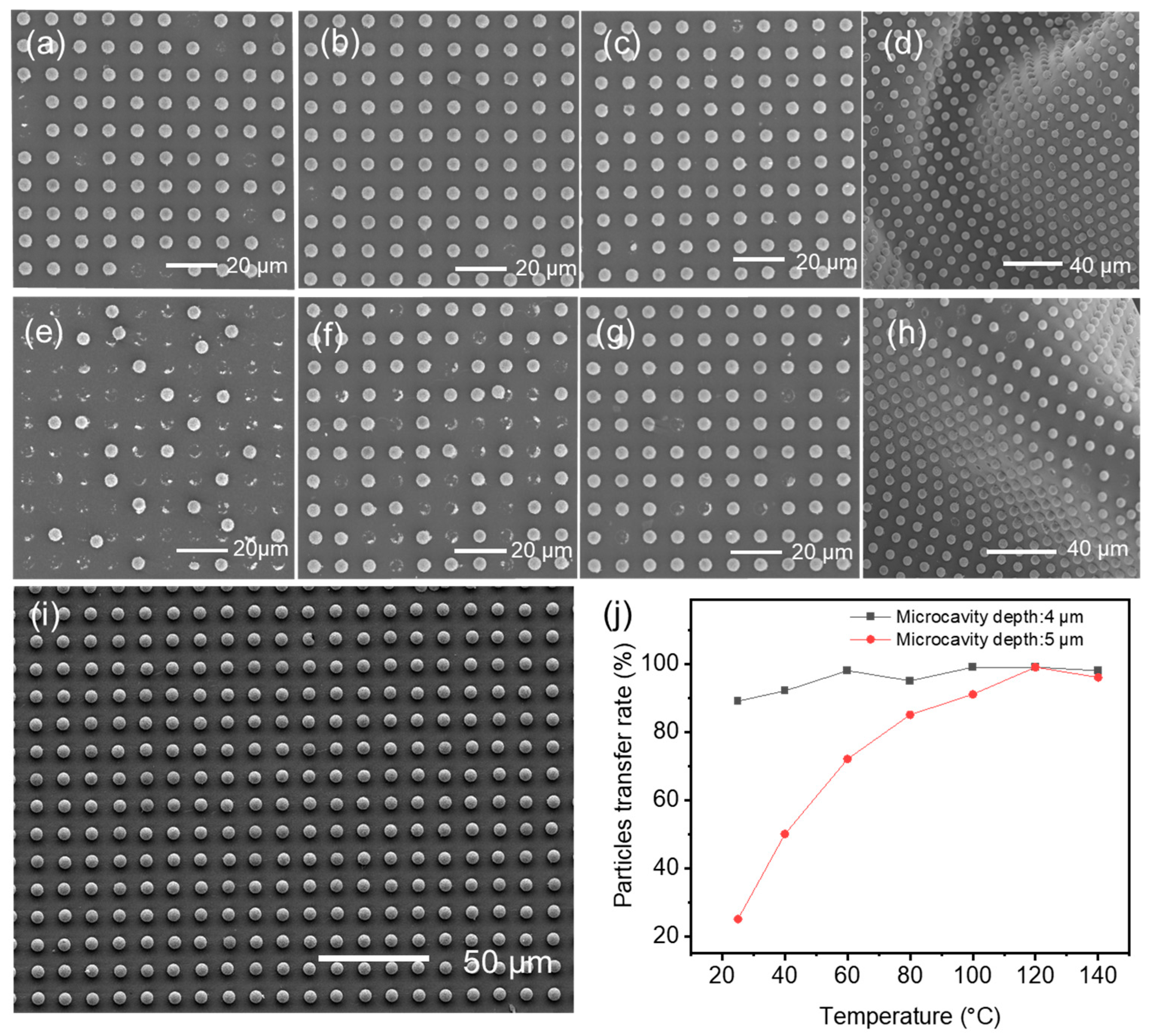 3.1.3. The Temperature Effect on Particle Transfer Efficiency from the Template to PU Adhesives
