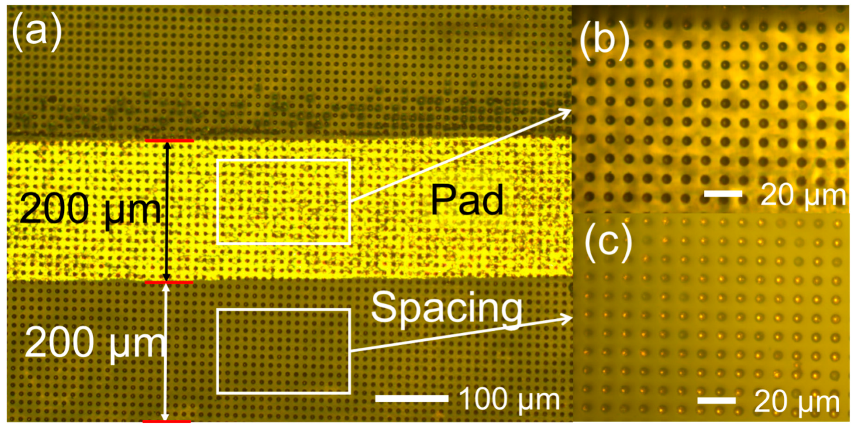3.5. The Use of the A-ACFs for High-Precision Circuit Bonding