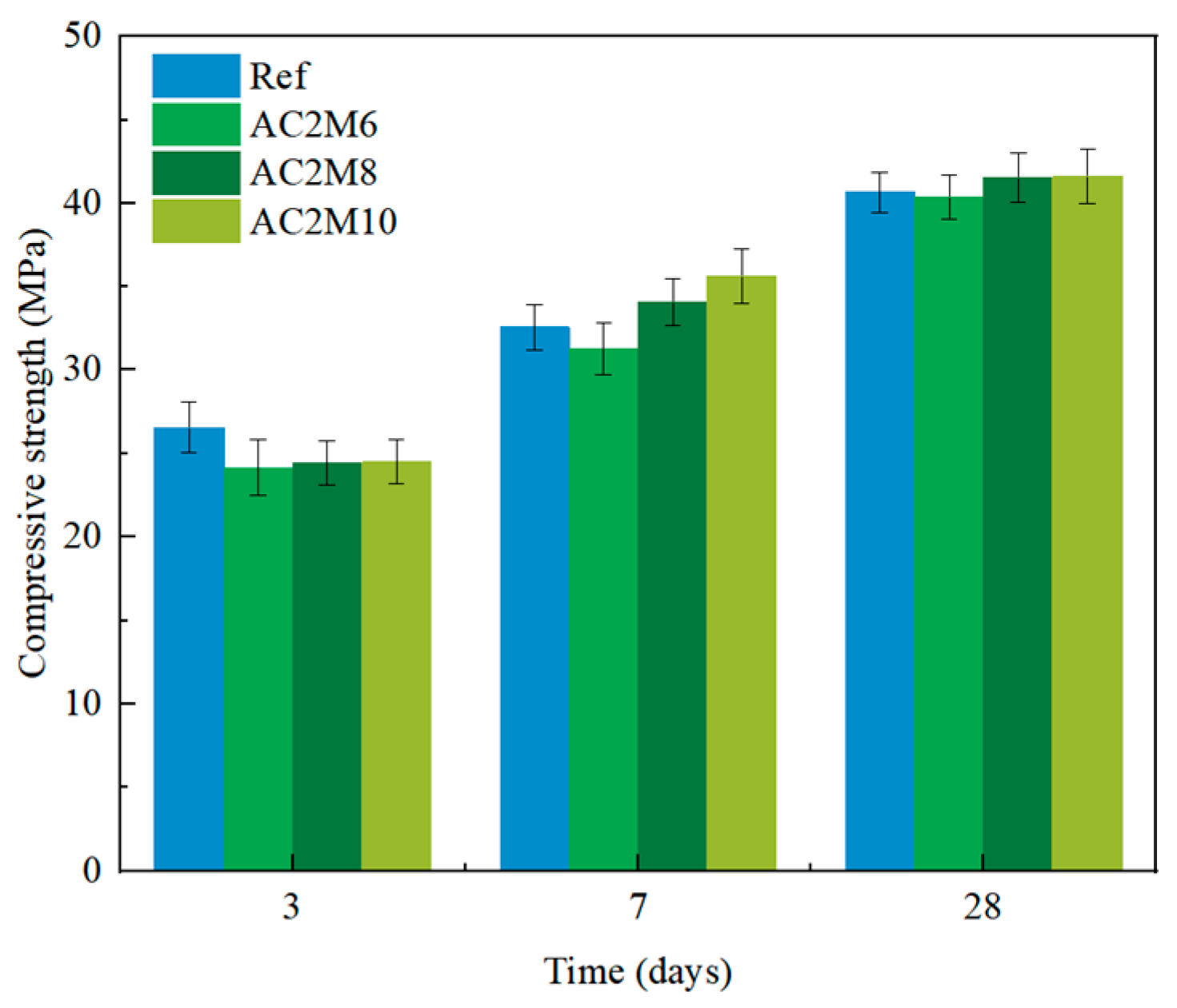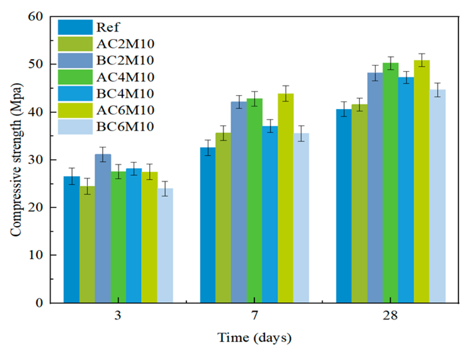 - Bubble mixing is more efficient in carbon capture for cementitious materials, compared to atmospheric mixing, as a consequence of increased contacting surface area between CO2 and pastes. This can be validated by the significant early strength improvement by comparing BC2M10 with AC2M10 and can also be supported by the TGA.