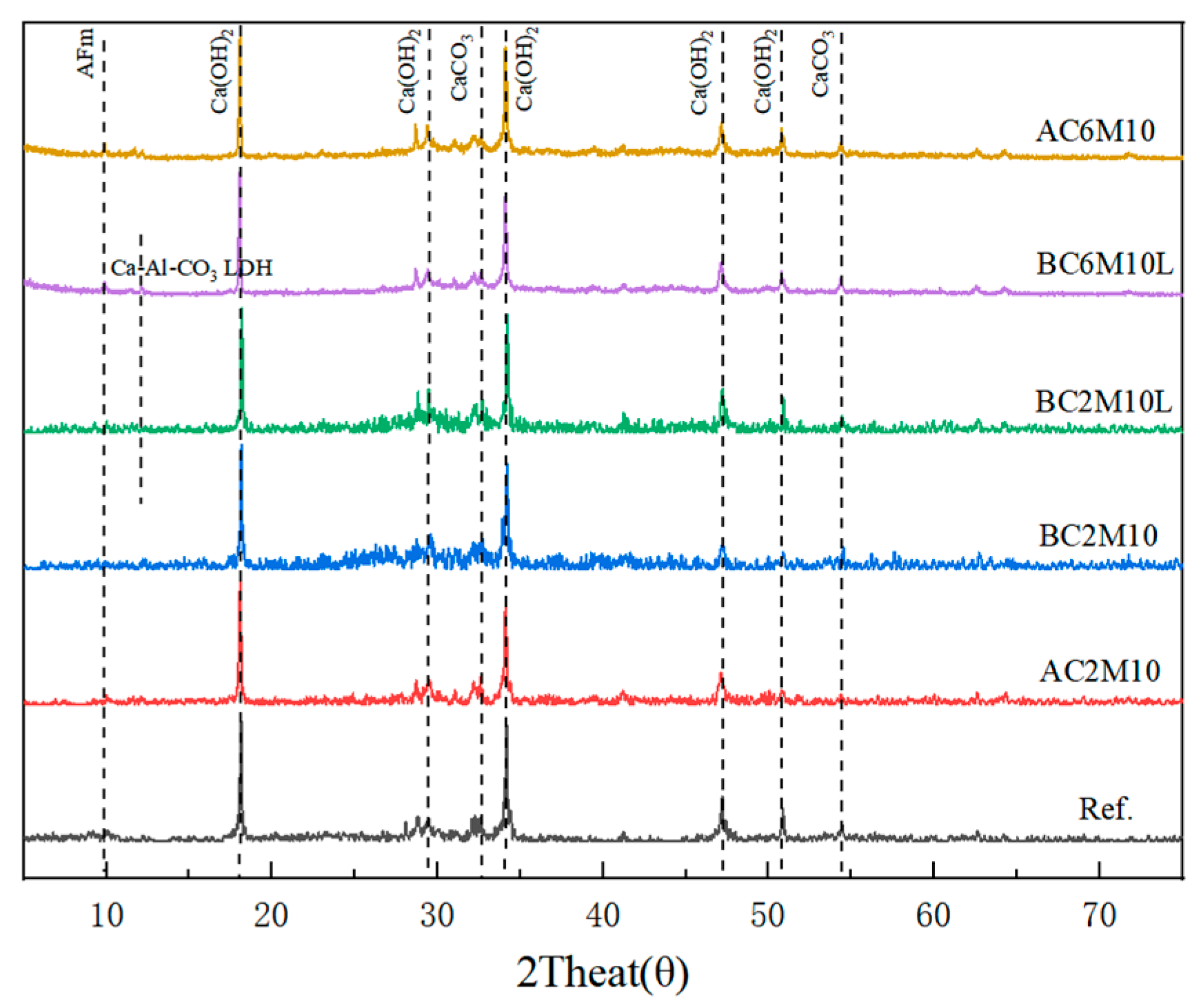 17], CaAl-LDH was applied as a hardening accelerator in concrete. The specimens containing CaAl-LDH showed a 61% increase in early compressive strength and a 71% increase in flexural strength. Chen et al. [