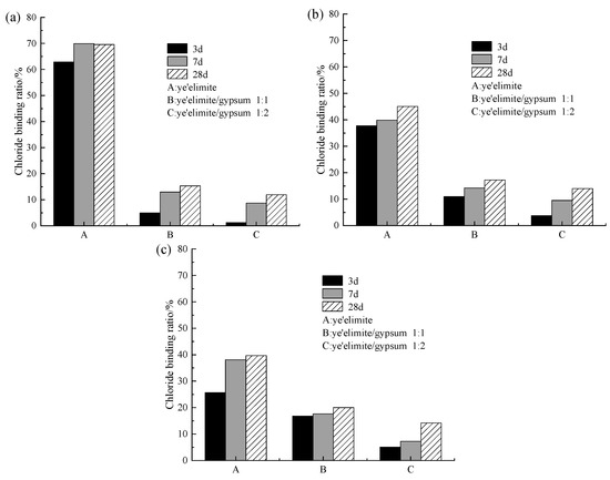 Chloride binding capacity under internally incorporated chloride conditions: (a) 0.02 mol; (b) 0.04 mol; (c) 0.06 mol.
