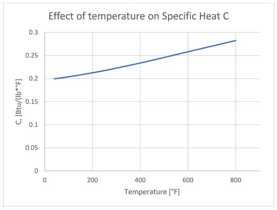 The effect of temperature on the Specific Heat (C) on aluminum 7075 [41].