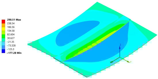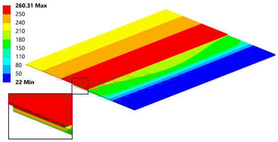 In the Lukasiewicz Research Network, Institute of Aviation, plates are joined following internally established processes. The temperature in the initial phase is raised to the flow temperature, at which point the welding process occurs. After the appropriate time, the energy supply is cut off, and the entire workstation is left to cool. Upon cooling, the effect of residual stress becomes apparent (Figure 7 and Figure 8).