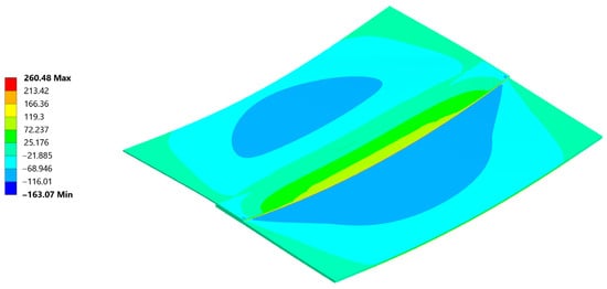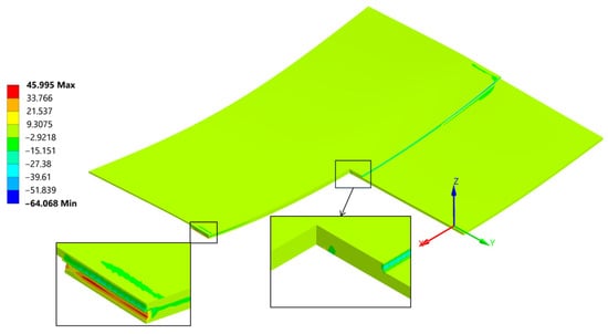 Normal σxx stress results at the end of the 20 °C–260 °C–20 °C cycle.