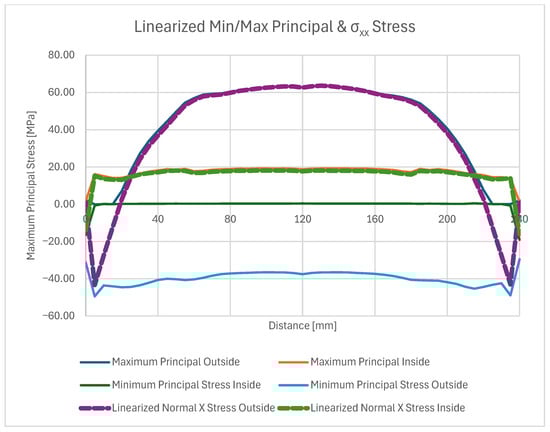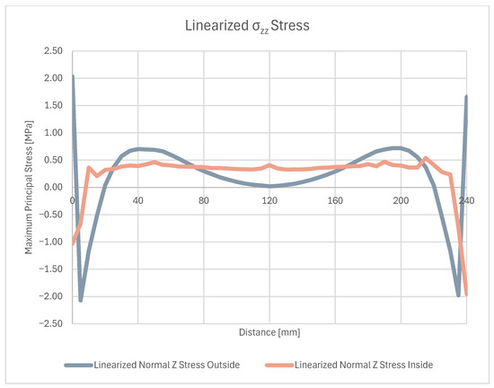 Normal σxx stress results at the end of the 20 °C–240 °C–20 °C cycle.