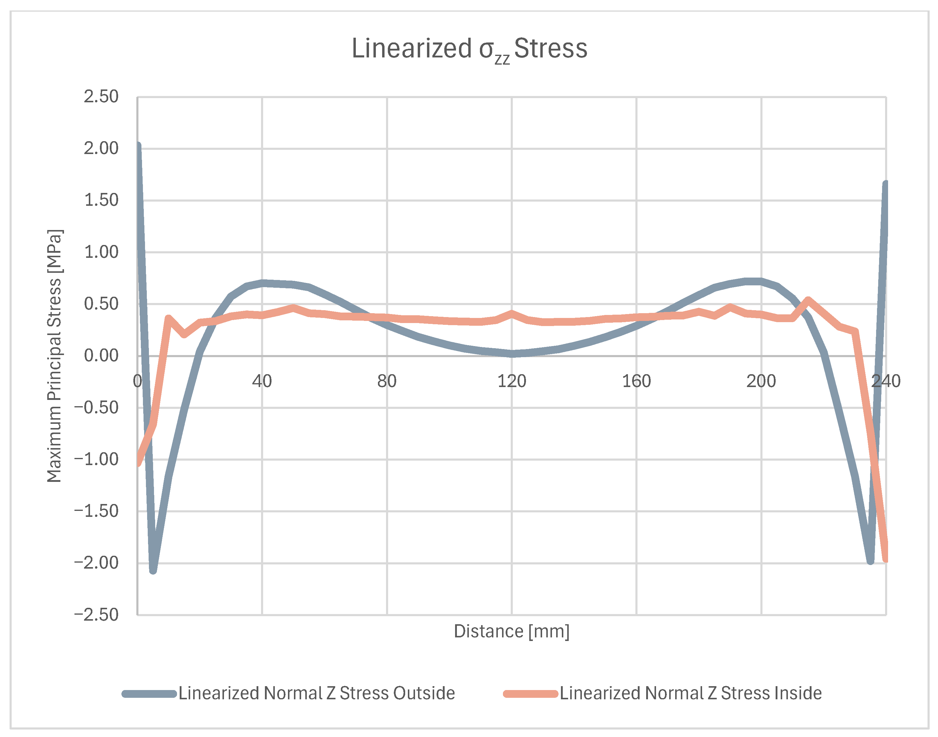| Linearized σzz FEM (edge) [MPa] | −1.75 | −1.93 | −2.07 |