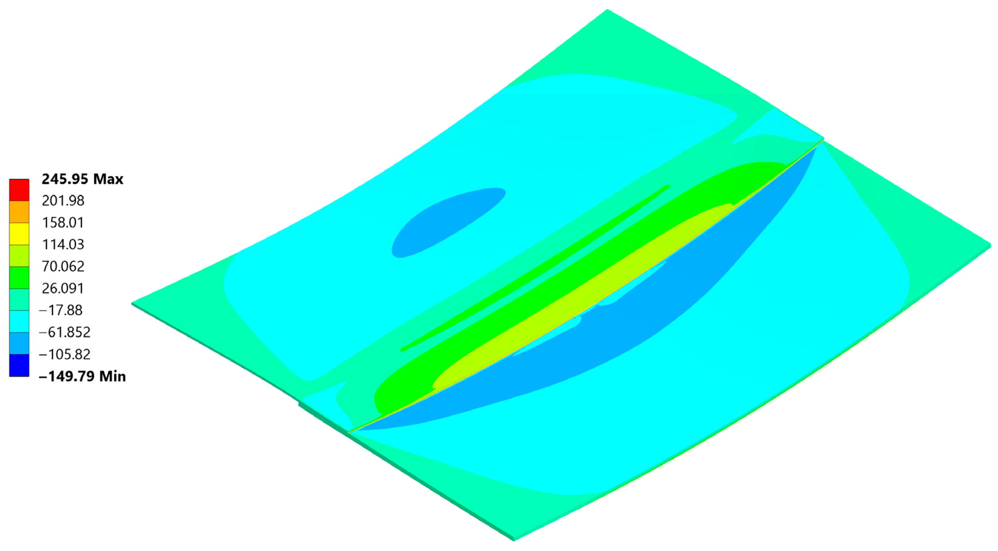 - Nagel, L.; Herwig, A.; Schmidt, C.; Horst, P. Numerical Investigation of Residual Stresses in Welded Thermoplastic CFRP Structures. J. Compos. Sci. 2021, 5, 45. [Google Scholar] [CrossRef]