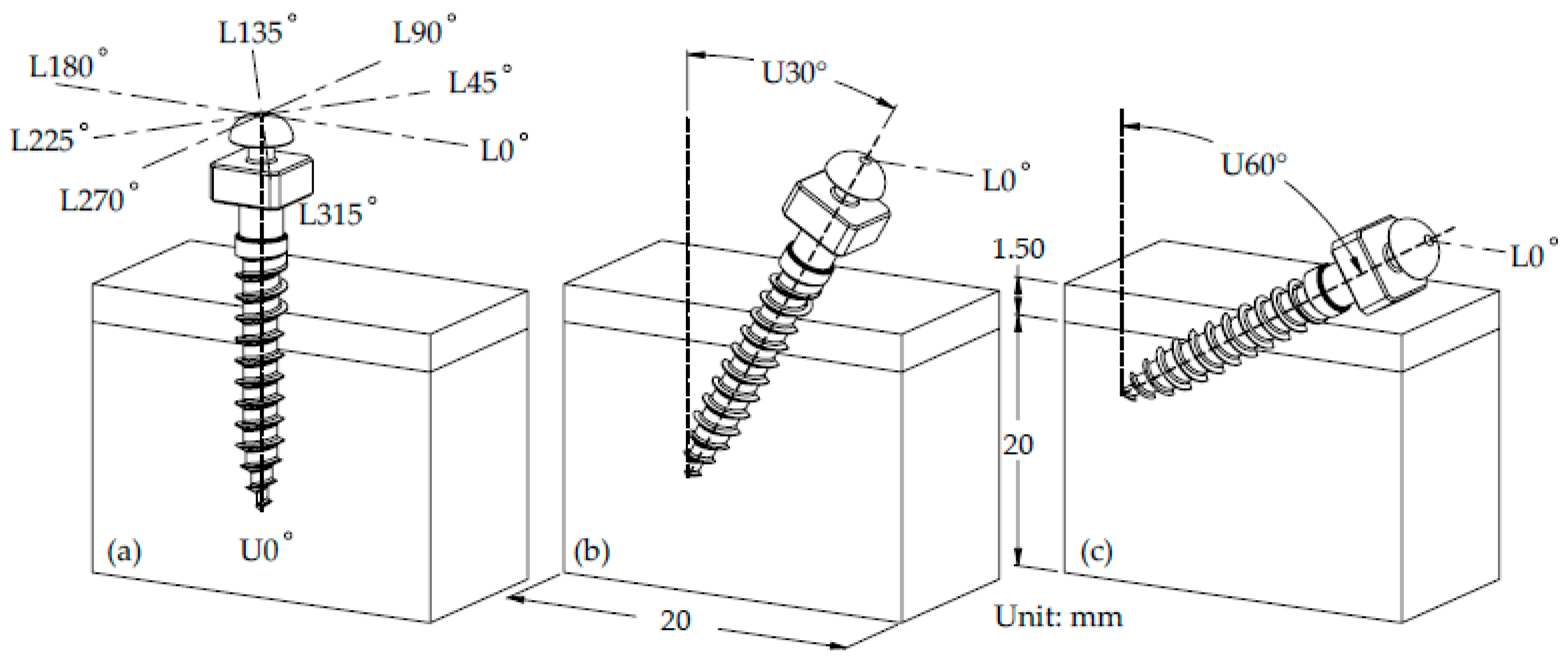 - Araghbidikashani, M.; Golshah, A.; Nikkerdar, N.; Rezaei, M. In-vitro impact of insertion angle on primary stability of miniscrews. Am. J. Orthod. Dentofac. Orthop. 2016, 150, 436–443. [Google Scholar] [CrossRef]