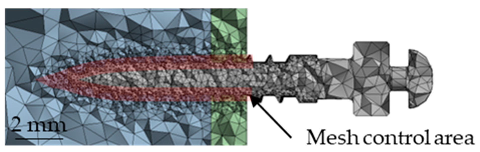 - Teekavanich, C.; Uezono, M.; Takakuda, K.; Ogasawara, T.; Techalertpaisarn, P.; Moriyama, K. Evaluation of cortical bone microdamage and primary stability of orthodontic miniscrew using a human bone analogue. Materials 2021, 14, 1825. [Google Scholar] [CrossRef]