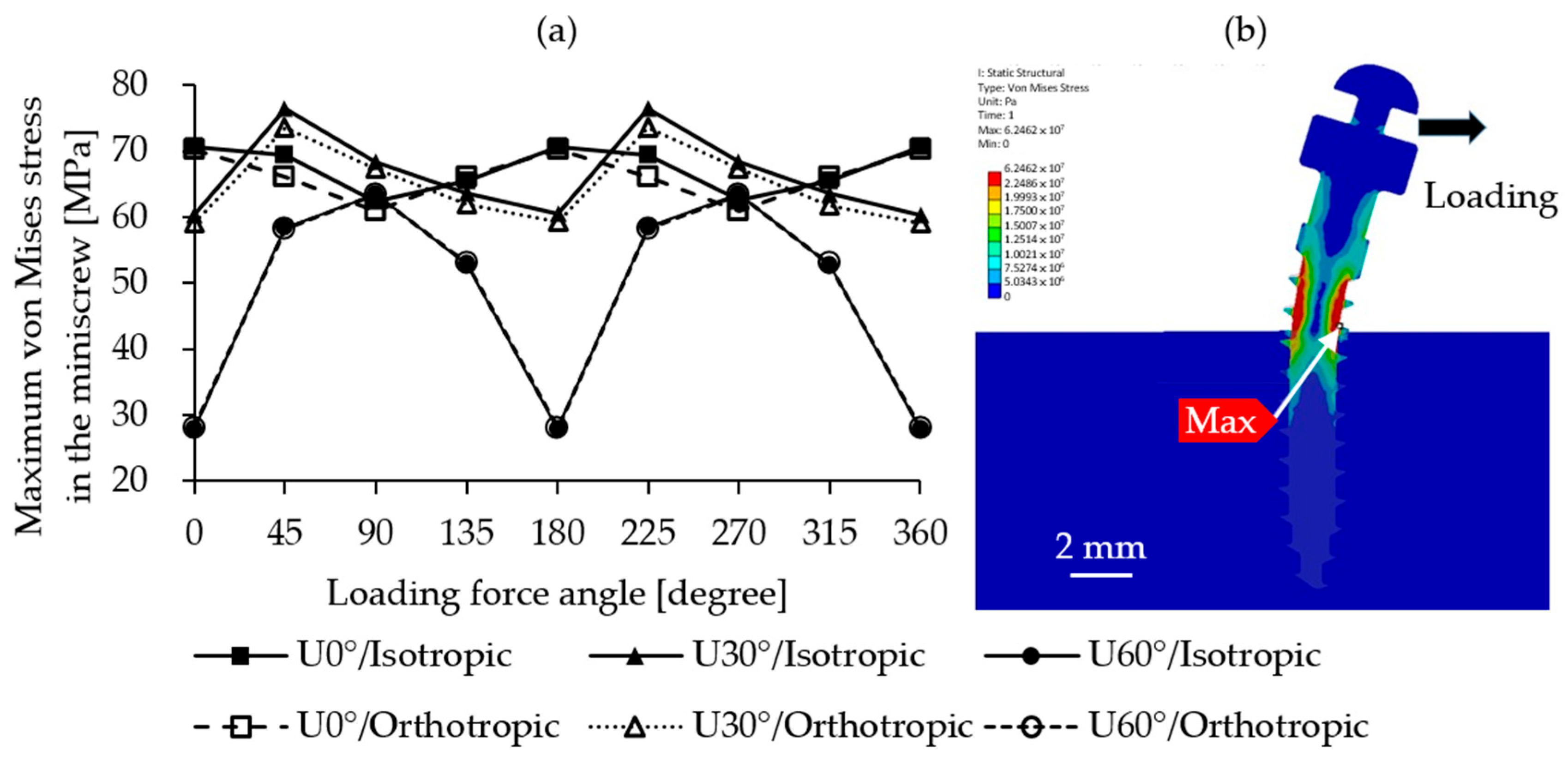 3.2. Maximum Von Mises Stress in the Miniscrew