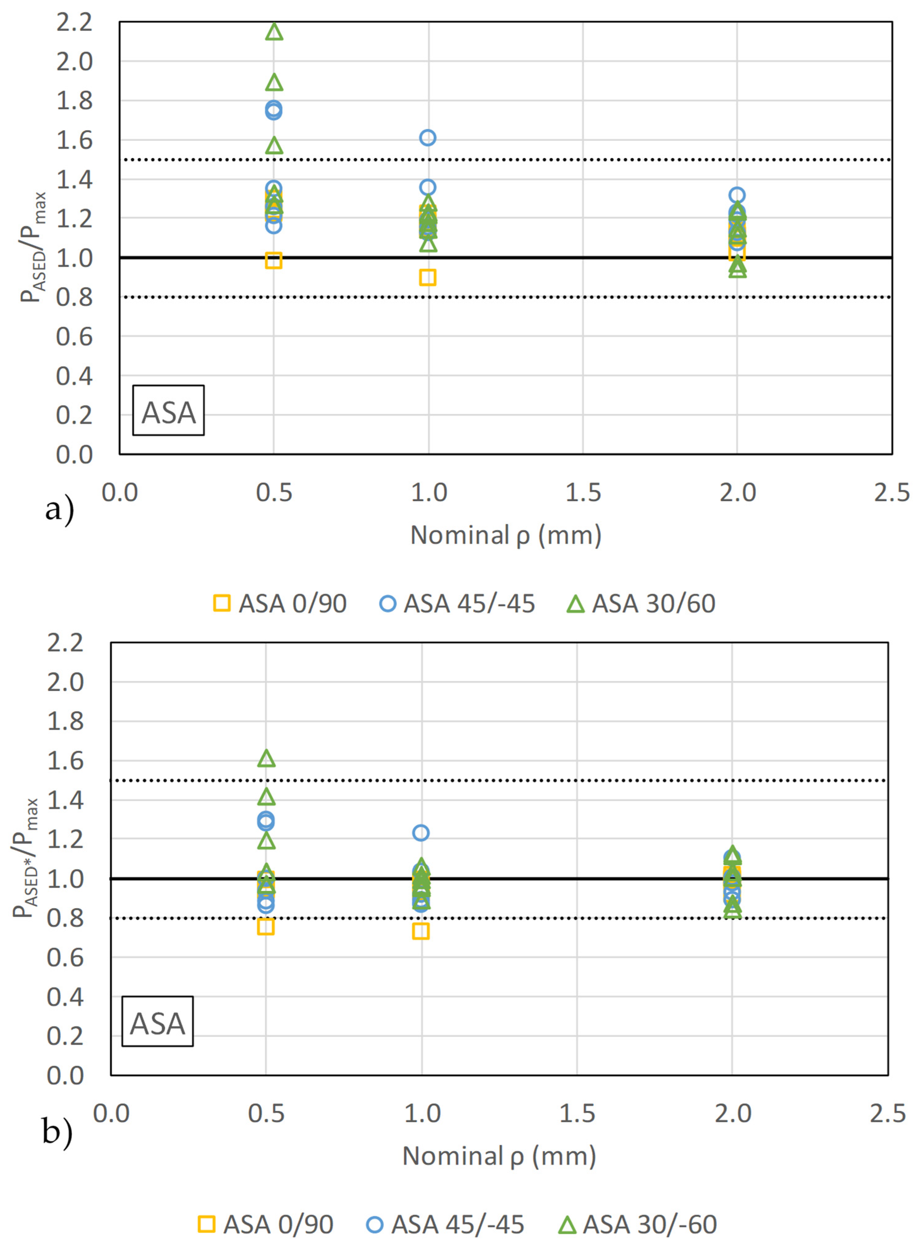 | RO | Test nº | ρ (mm) | W (mm) | B (mm) | a0 (mm) | Pmax (N) | PASED (N) | PASED/Pmax | PASED* (N) | PASED*/Pmax |