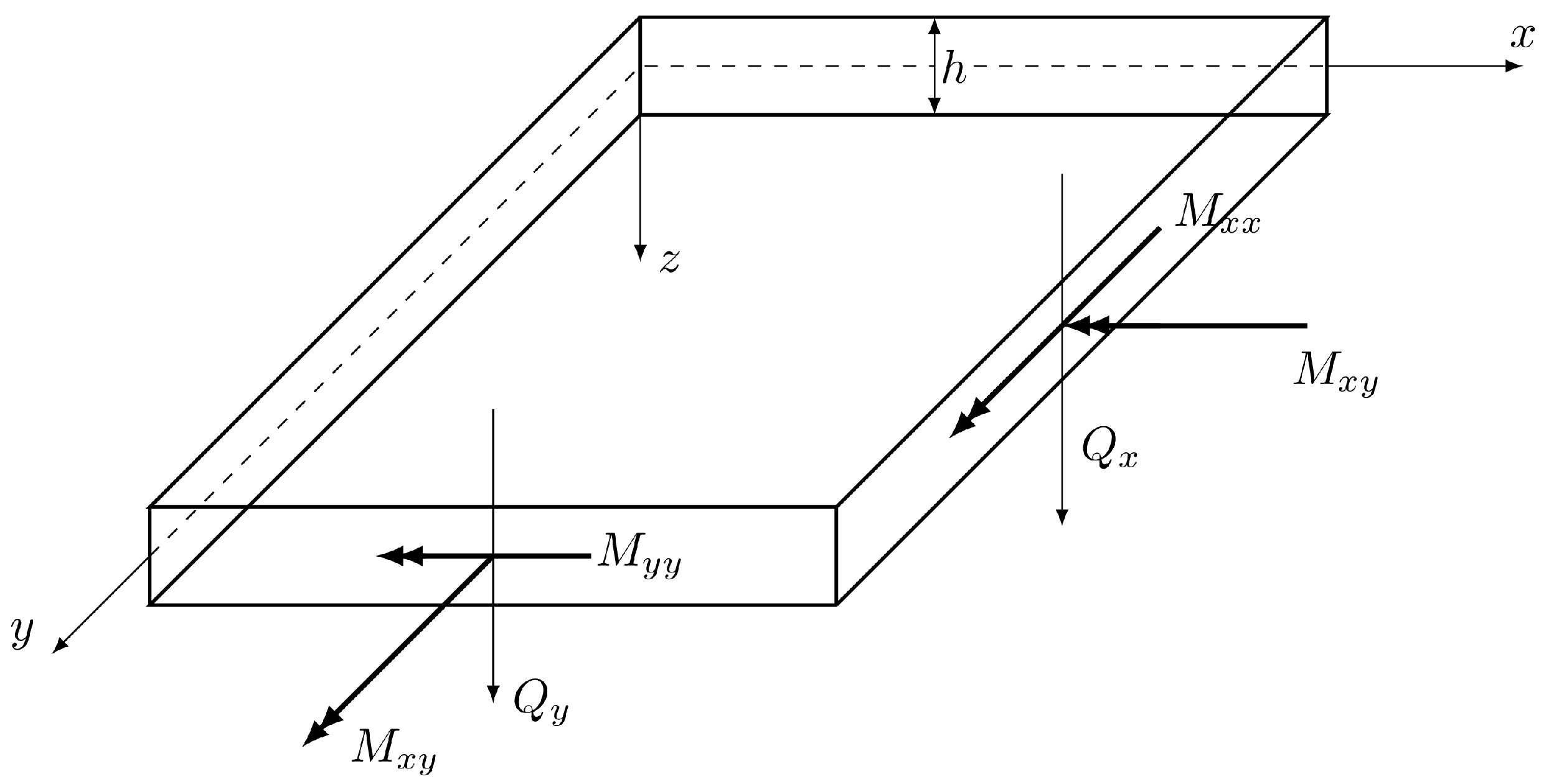 The equilibrium of bending and twisting moments M α β and shear forces Q α (Figure 2), induced by a transverse distributed loading q, yields the following equations: