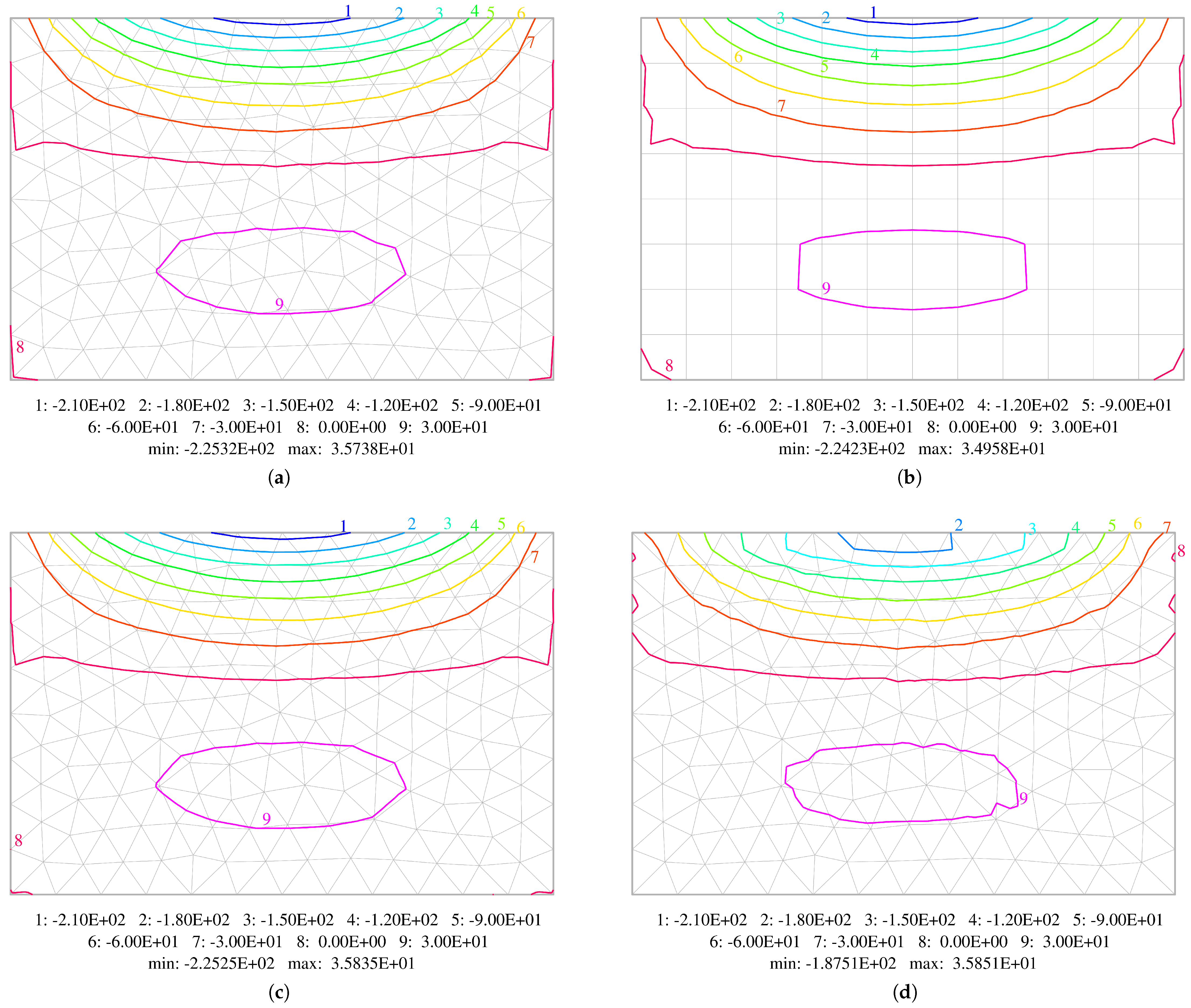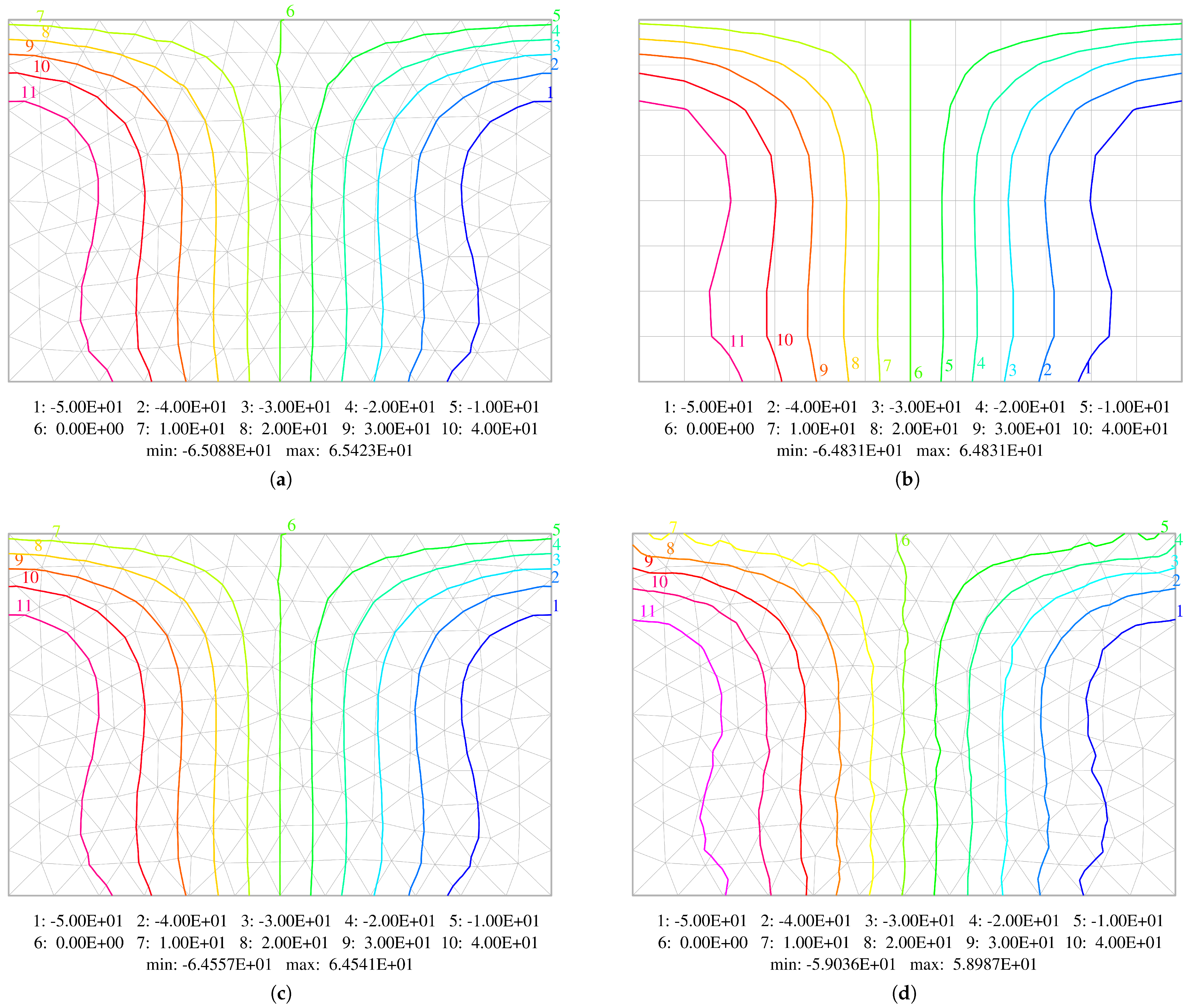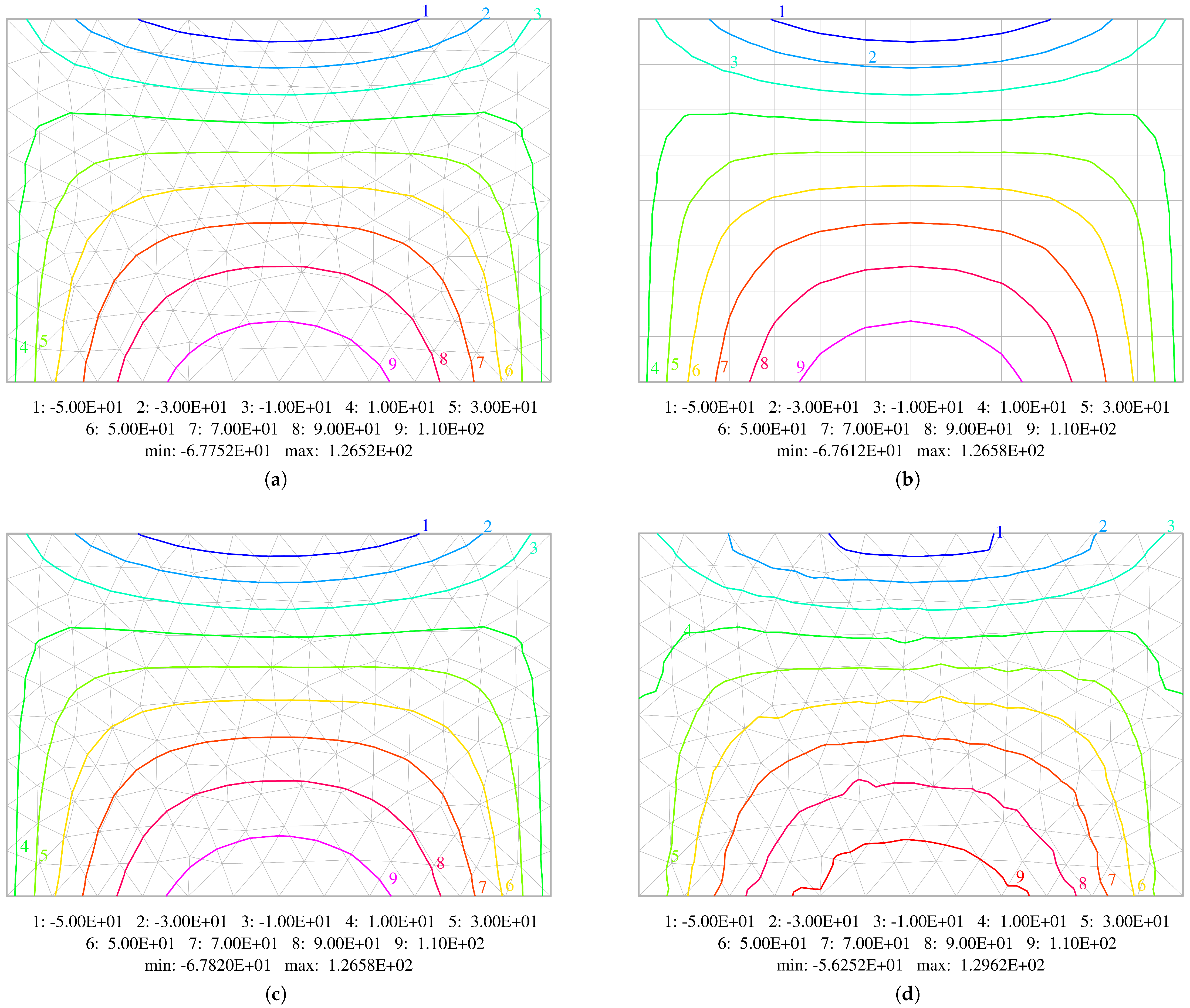 28. Hughes, T.J.R. The Finite Element Method: Linear Static and Dynamic Finite Element Analysis; Dover Publications: Garden City, NY, USA, 2000. [Google Scholar]