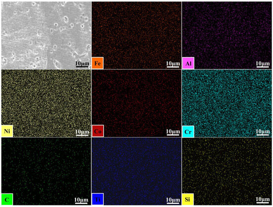 The EDS surface scan image of the weld center for the AlCoCrFeNi2.1/GH3030 welded joint.
