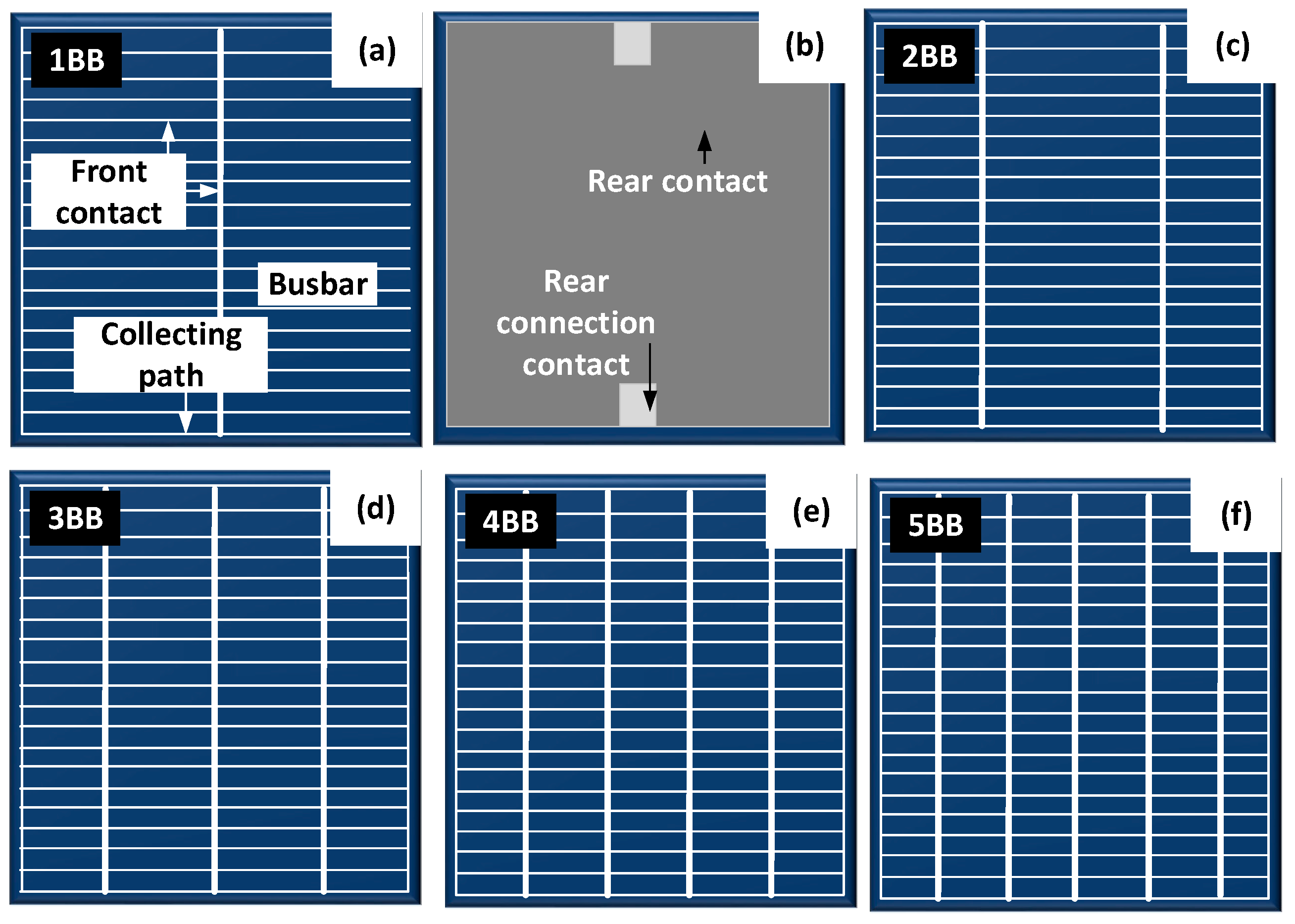 | Number of Busbars in a Solar Cell | Area | Thickness |