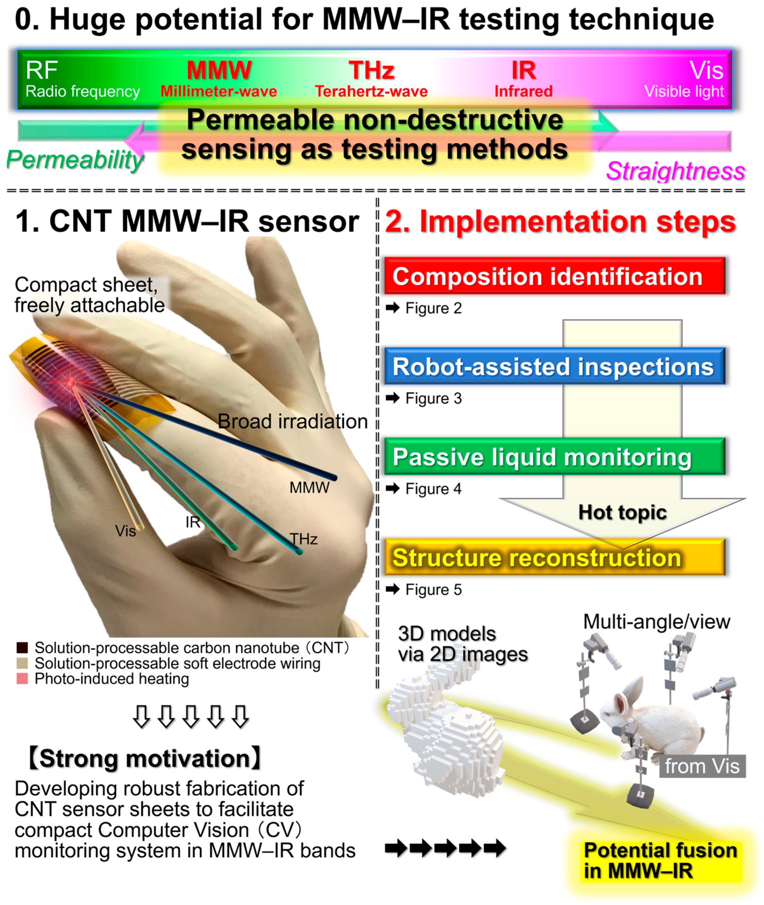 - Shikichi, D.; Ota, R.; Kubota, M.; Kinoshita, Y.; Izumi, N.; Kosaka, M.; Nishi, T.; Sakai, D.; Matsuzaki, Y.; Takai, L.; et al. Multi Computer Vision-Driven Testing Platform: Structural Reconstruction and Material Identification with Ultrabroadband Carbon Nanotube Imagers. Adv. Mater. Technol. 2025, 10, 2401724. [Google Scholar] [CrossRef]