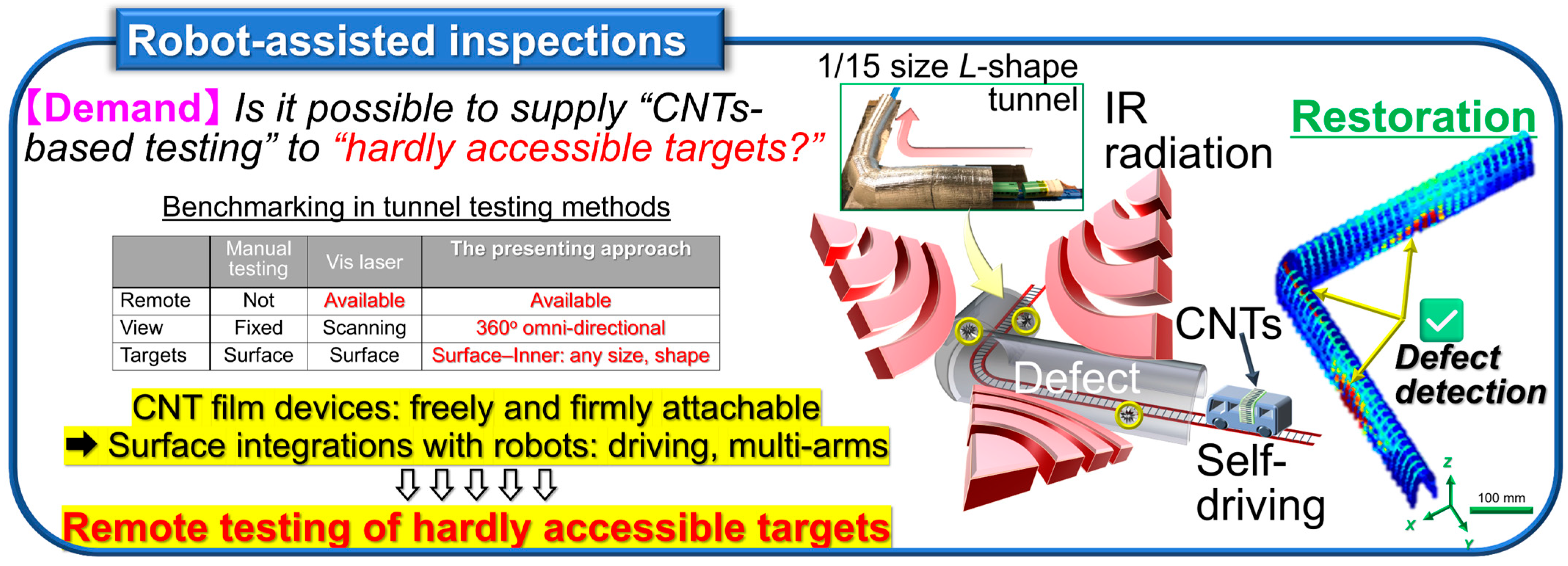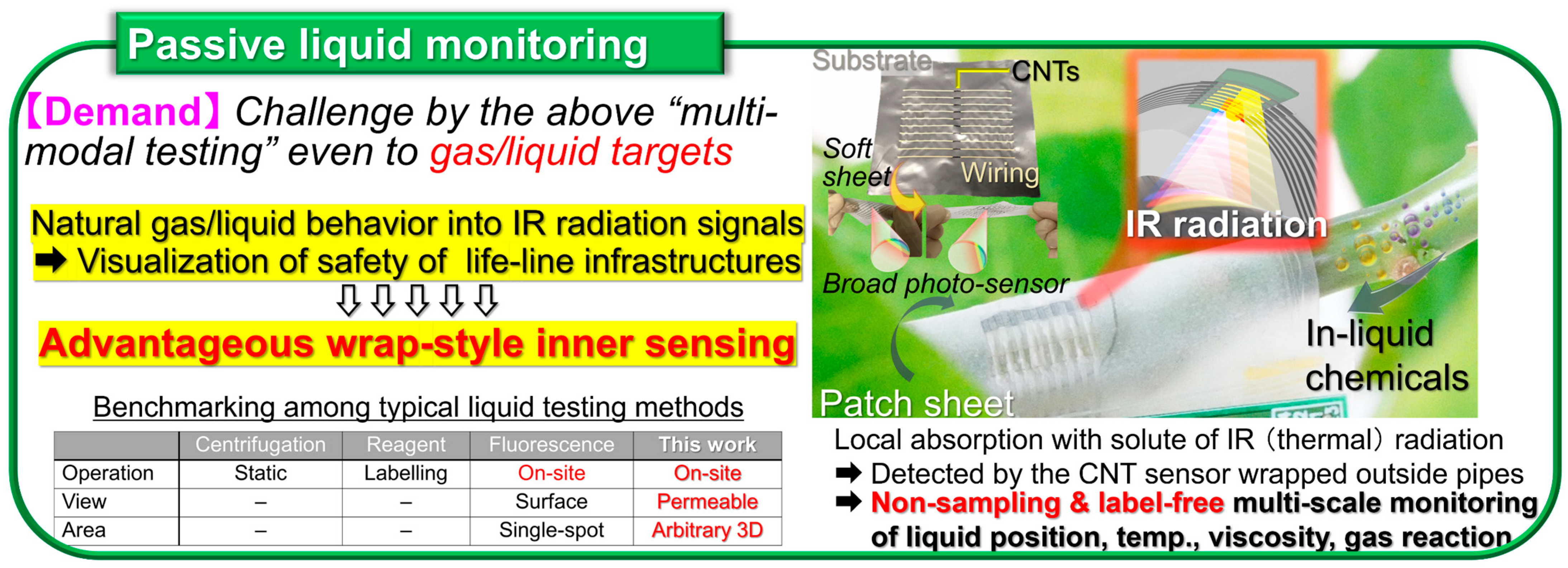 - Li, K.; Kinoshita, Y.; Sakai, D.; Kawano, Y. Recent Progress in Development of Carbon-Nanotube-Based Photo-Thermoelectric Sensors and Their Applications in Ubiquitous Non-Destructive Inspections. Micromachines 2023, 14, 61. [Google Scholar] [CrossRef] [PubMed]