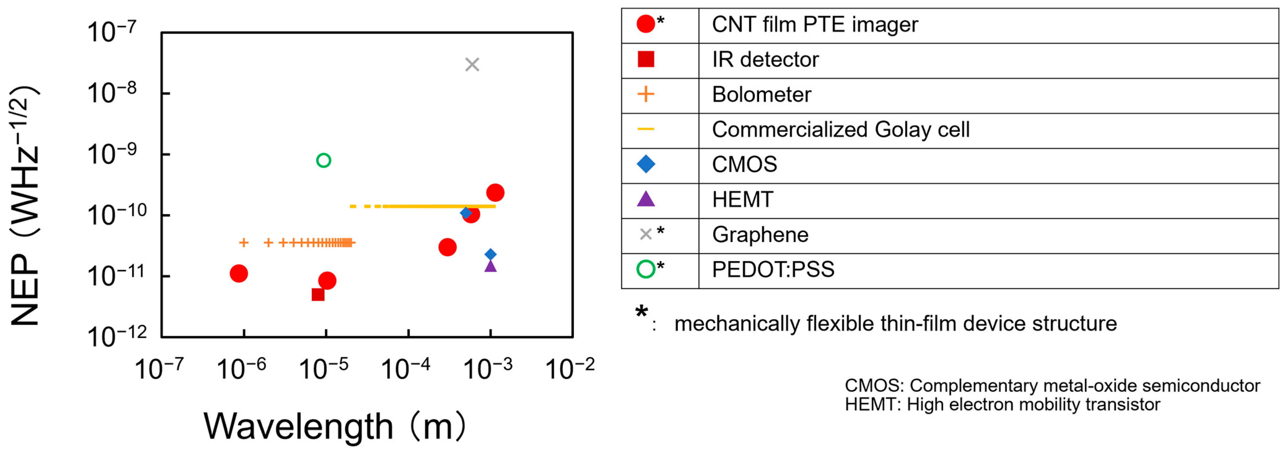 - Li, K.; Suzuki, D.; Kawano, Y. Series photothermoelectric coupling between two composite materials for a freely attachable broadband imaging sheet. Adv. Photon. Res. 2021, 2, 2000095. [Google Scholar] [CrossRef]