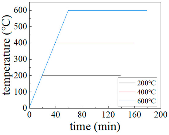 For the specimen heated to 200 °C, the CB aggregates in the middle of the damage surface are crushed, while the edge regions of CB aggregates detach and crack from the surrounding mortar, indicating that the bonding strength between CB aggregates and mortar begins to weaken due to high temperature. At 400 °C, CB aggregates are basically no longer crushed, but mortar cracks widen and extend to through-cracks. At this temperature, CH within the mortar starts to dehydrate and decompose, leading to significant reduction in CH quantity, crystal defects, loose structure, pore cracks, and interfacial cracks with CB aggregates, which decreases the bonding strength between CB aggregates and mortar.
