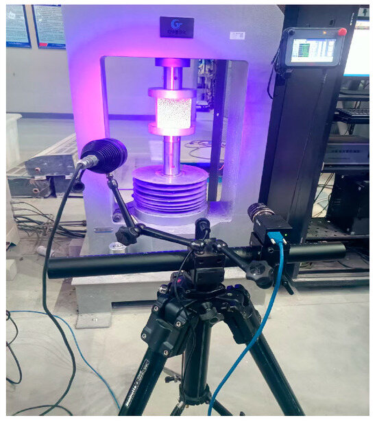 In the longitudinal strain contour plots, longitudinal compression strain propagates rapidly across the entire plane. Although the maximum longitudinal compression strain appears in the region corresponding to the transverse strain concentration area, the range of this maximum strain region expands with increasing stress ratio and temperature. After high-temperature exposure, the specimen becomes loose, with severe damage to particle connections and structural integrity. The internal structure cannot co-load efficiently after loading, leading to delayed force transfer. This results in a mismatch between transverse and longitudinal strain concentration areas, causing premature failure of the transverse strain concentration regions before full propagation.